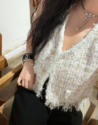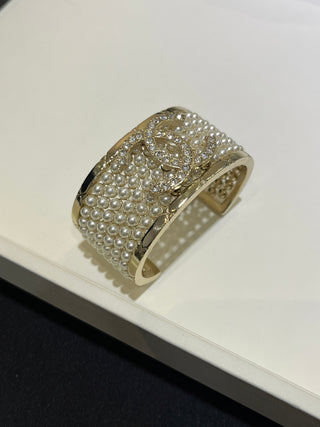 𝑪𝒉𝒂𝒏𝒆*New full diamond double C pendant gold diamond pattern half circle earrings