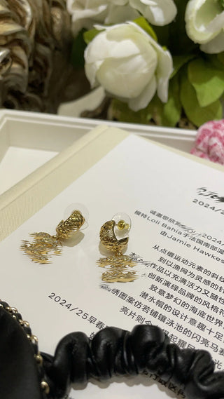 New full diamond double C pendant gold diamond pattern half circle earrings
