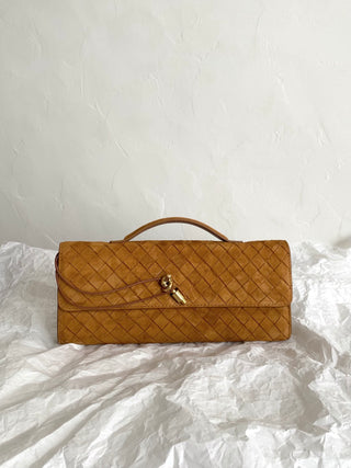 Andiamo clutch bag, suede in amber color 🍂