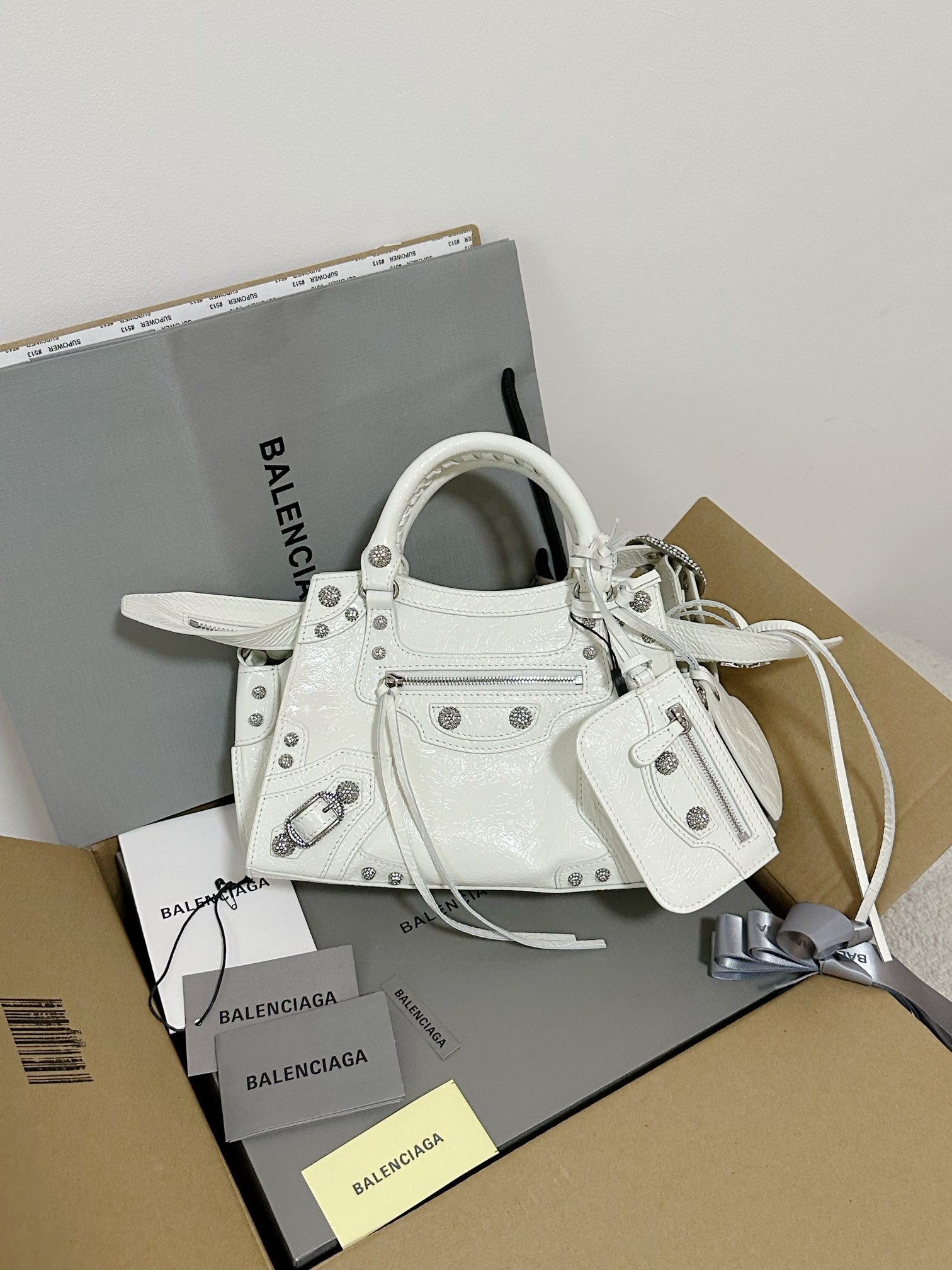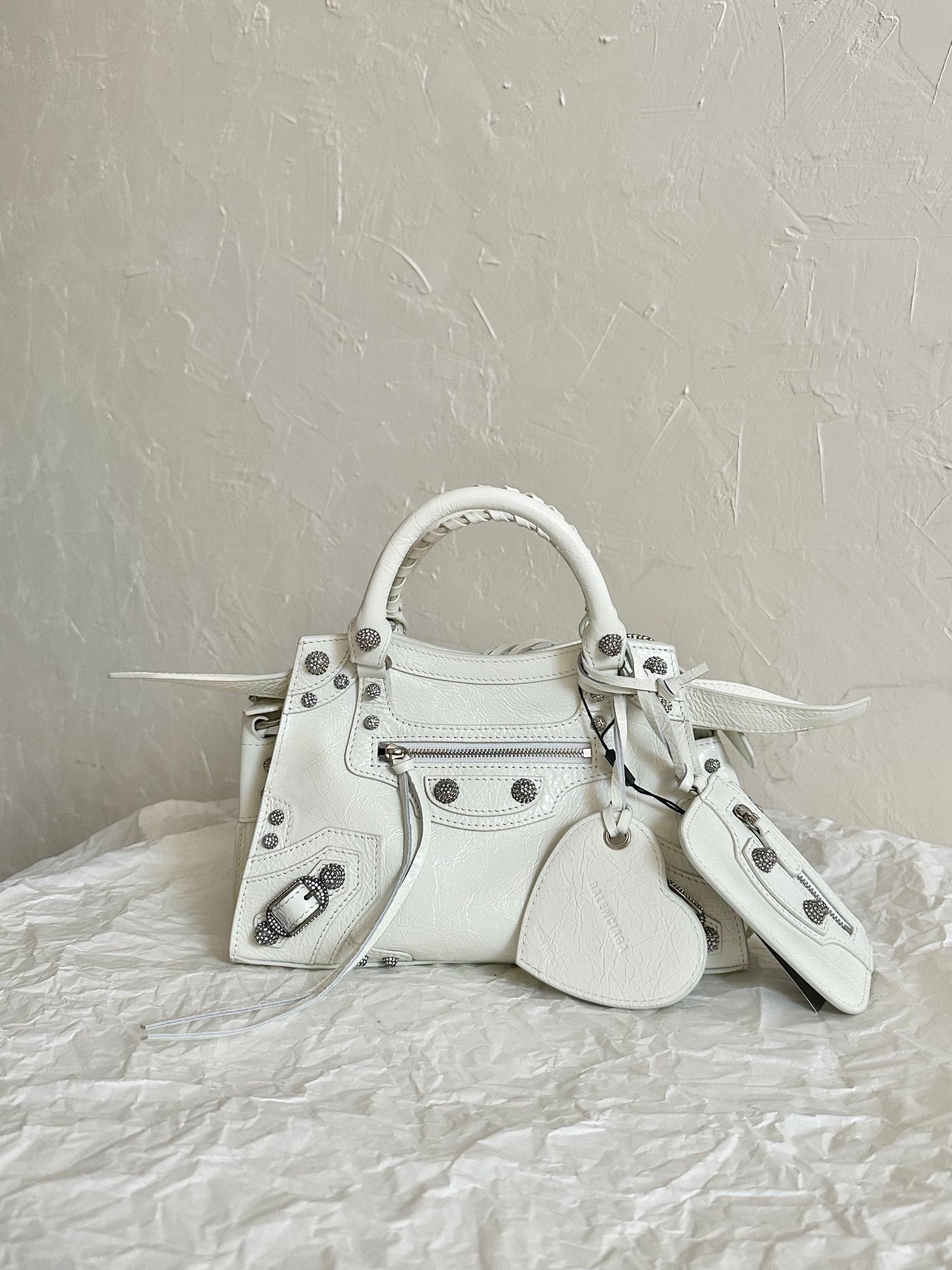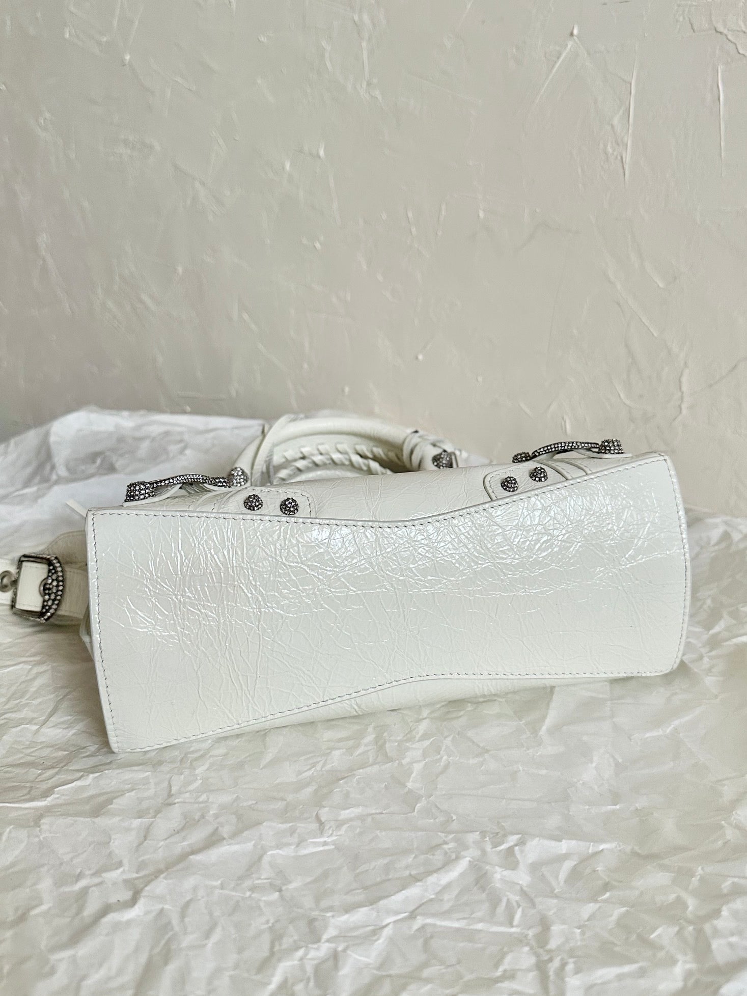 Neo Cagole motorcycle bag XS, white with rhinestones ✨