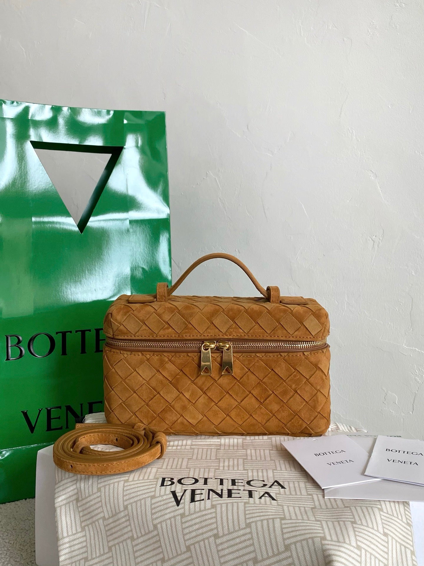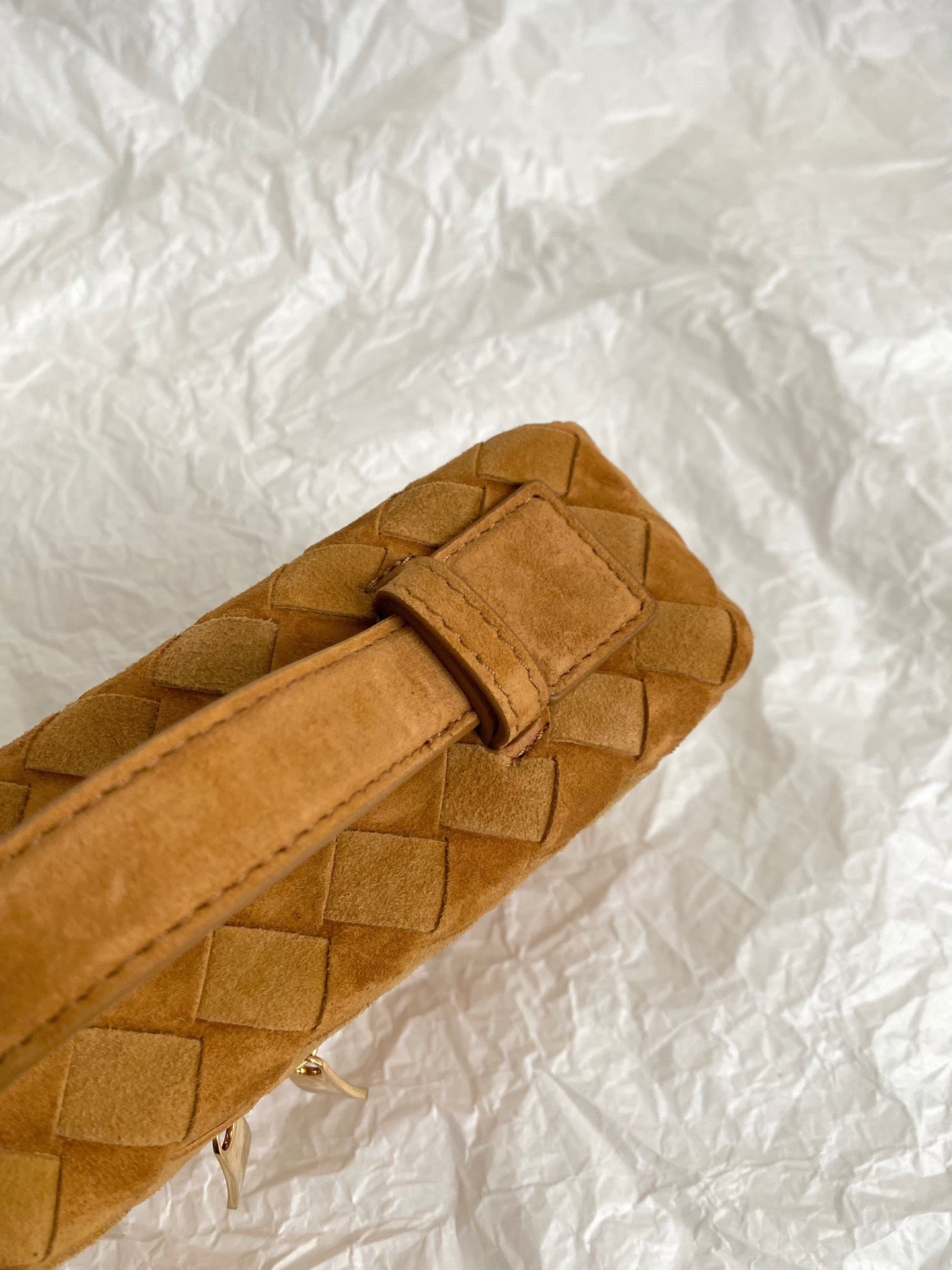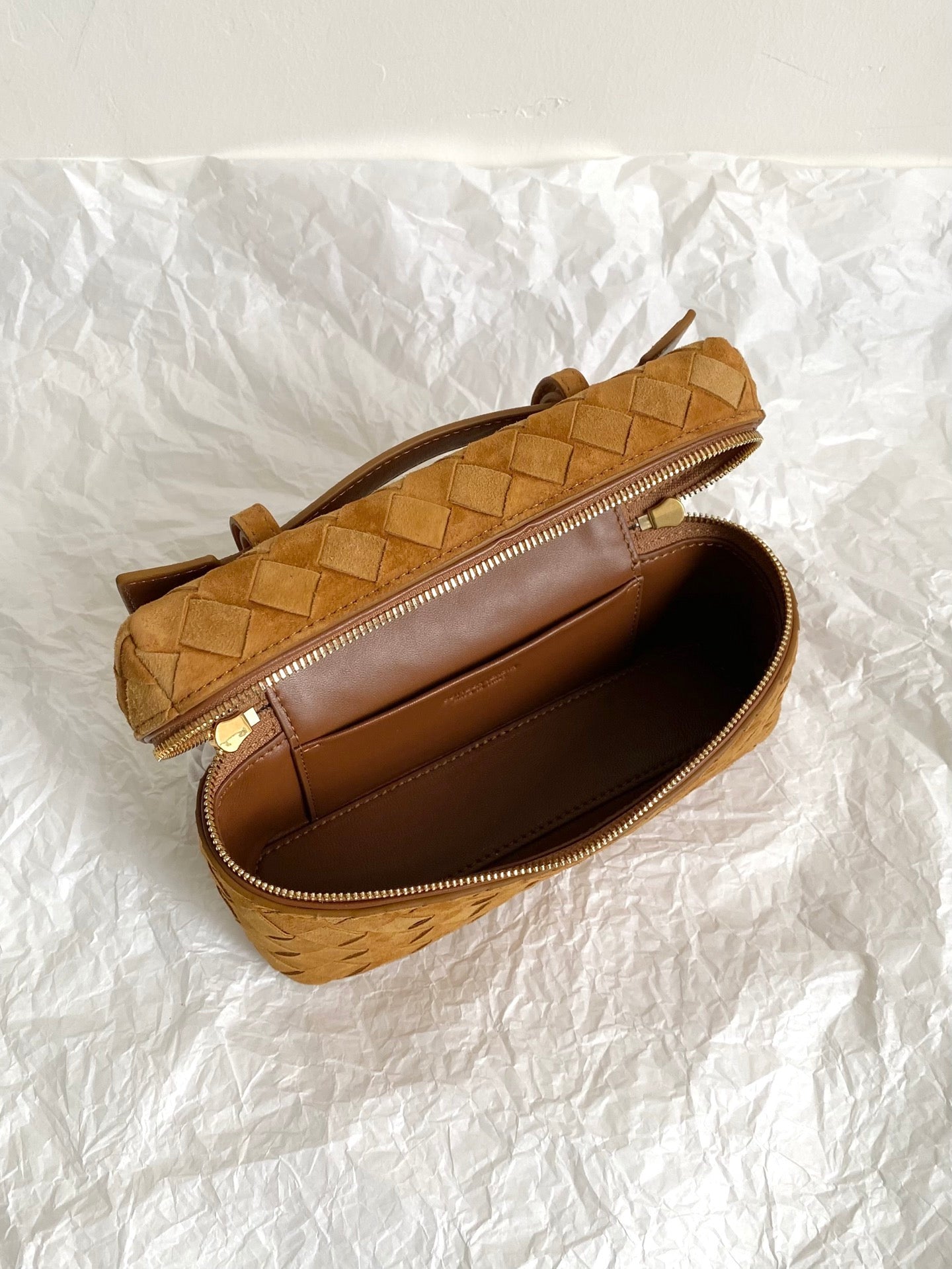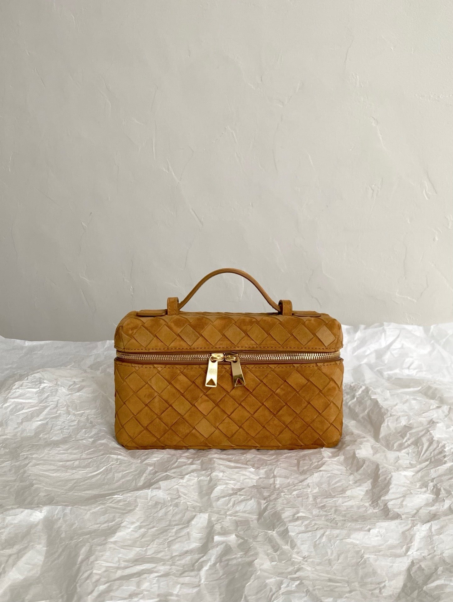 Vanity woven mini box bag, suede in amber color 🍂