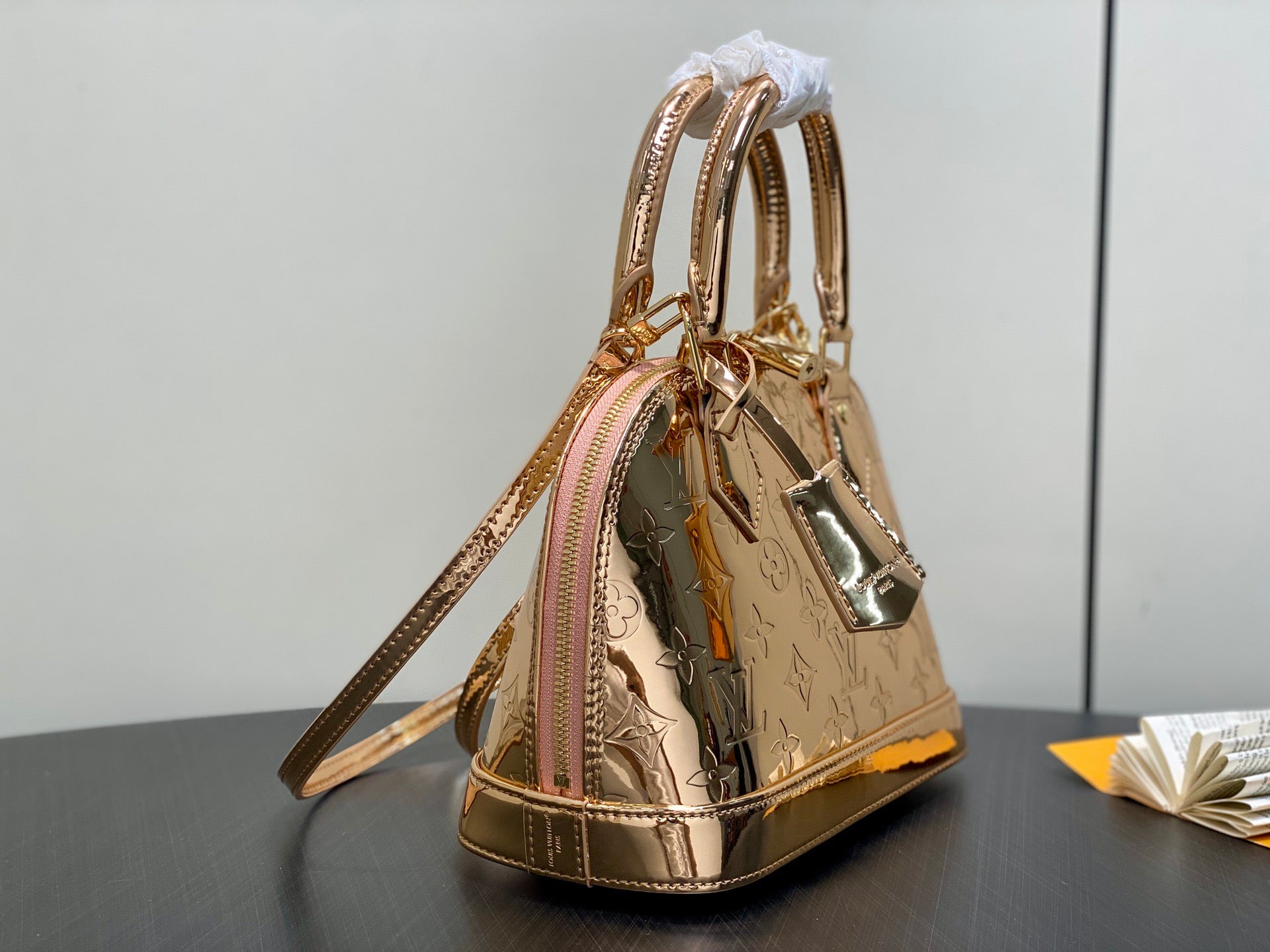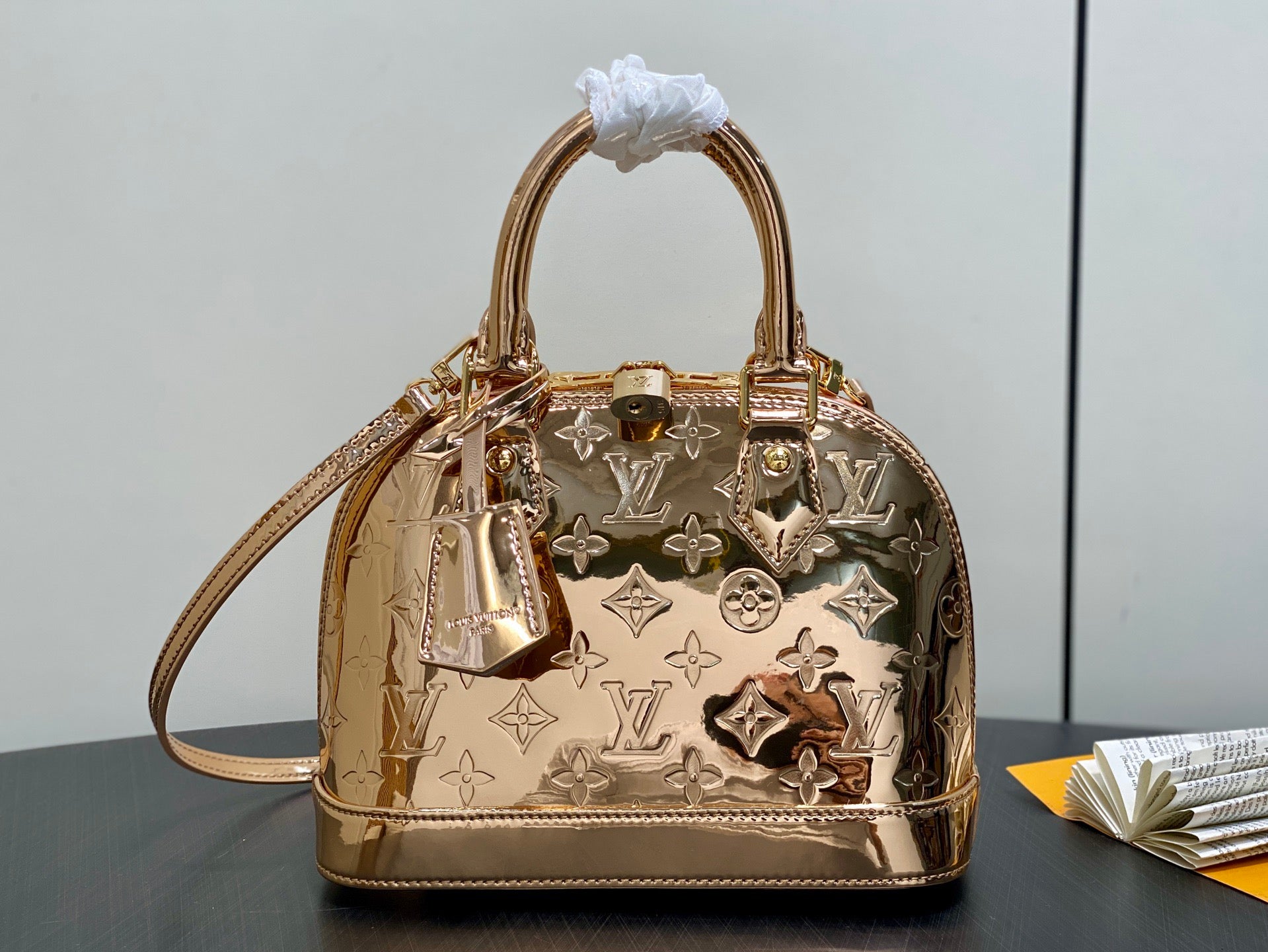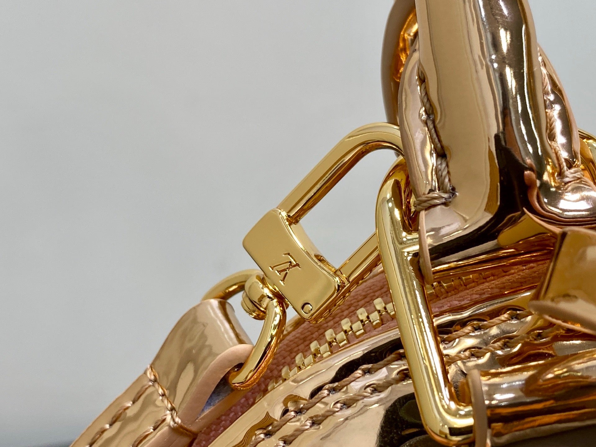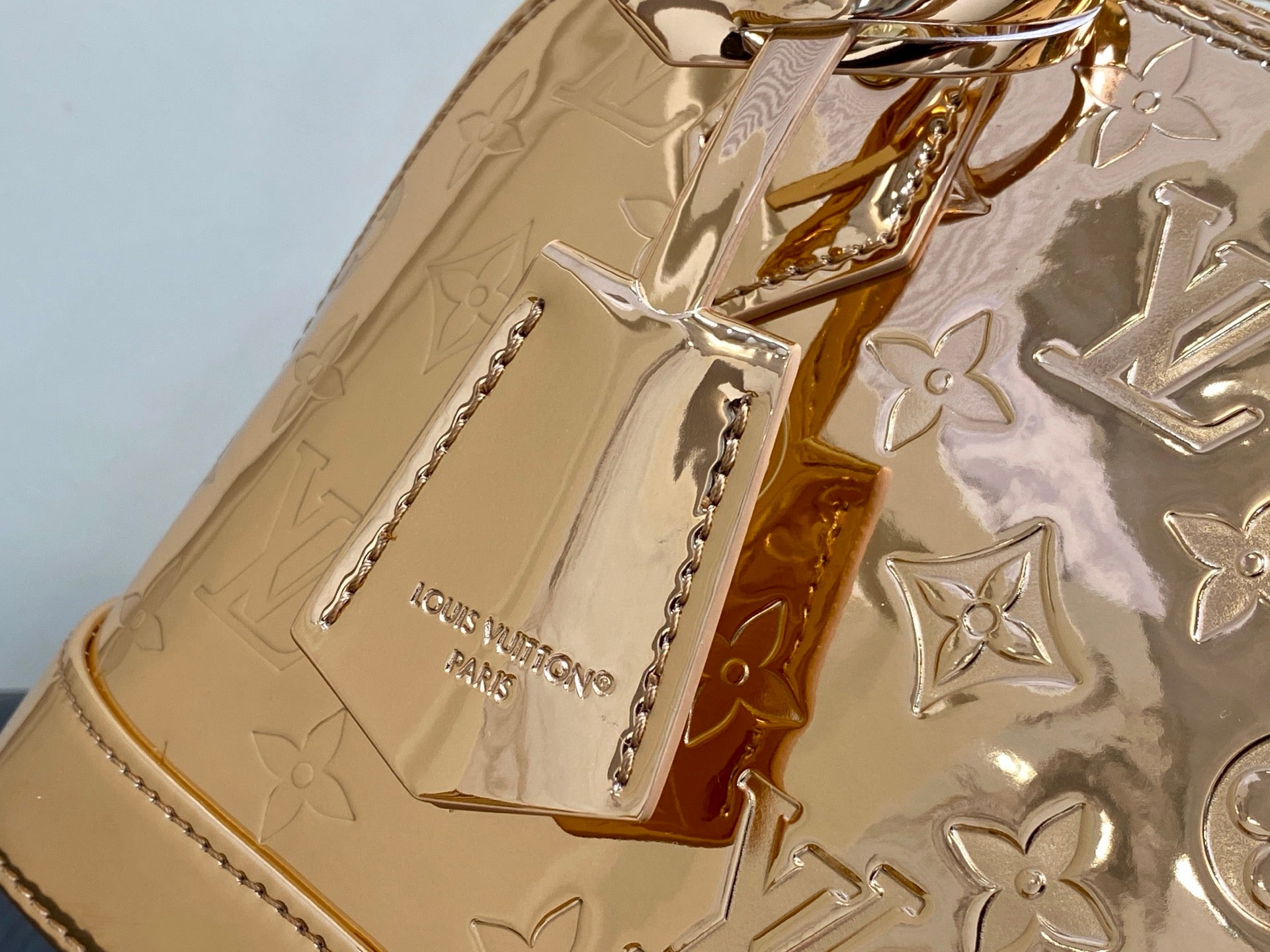 Small gold-plated patent leather shell bag