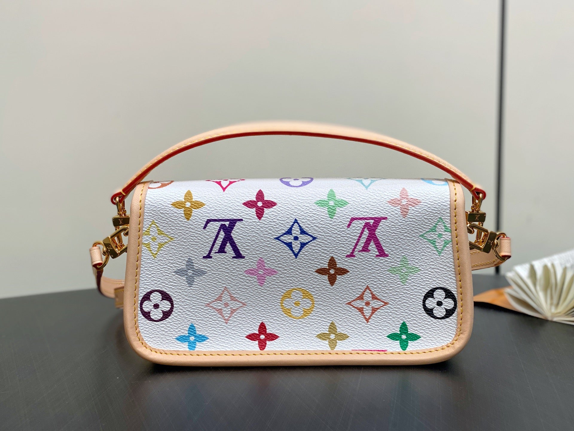 White tricolor baguette handbag