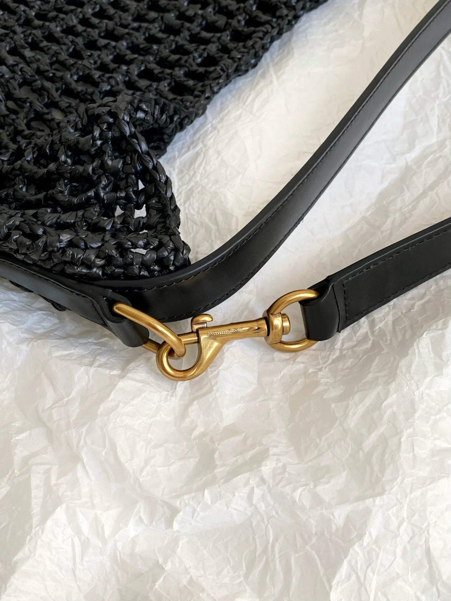 oxalis Raffia Woven Shoulder Bag, Black