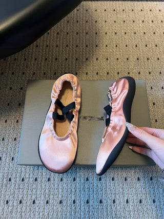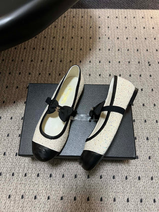26SS Early Spring Collection: Classic two-tone Mary Jane flats with bow detail.