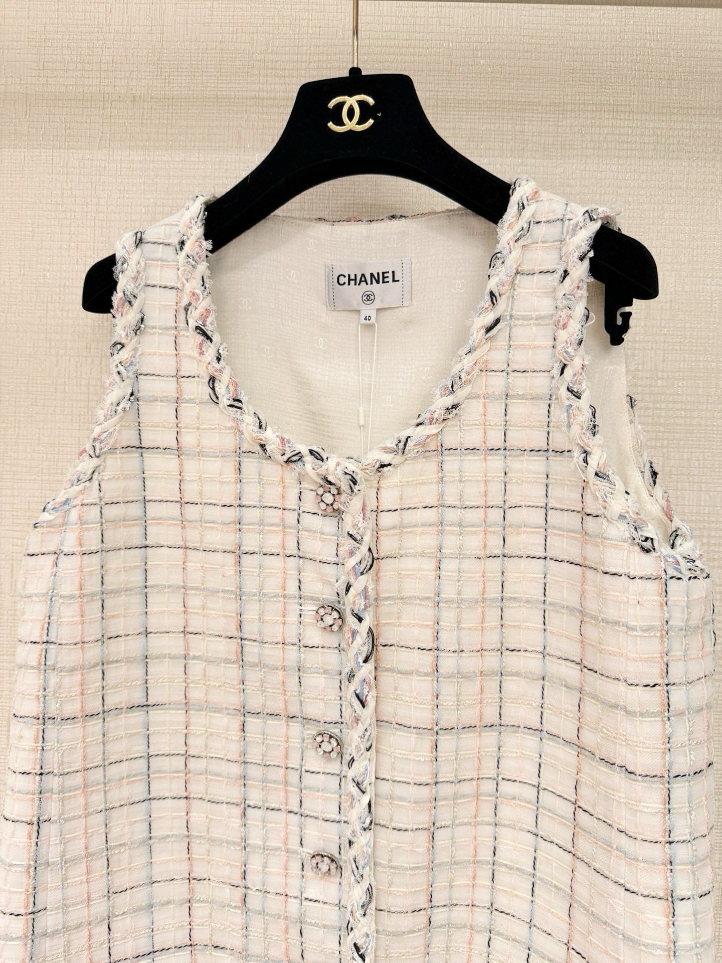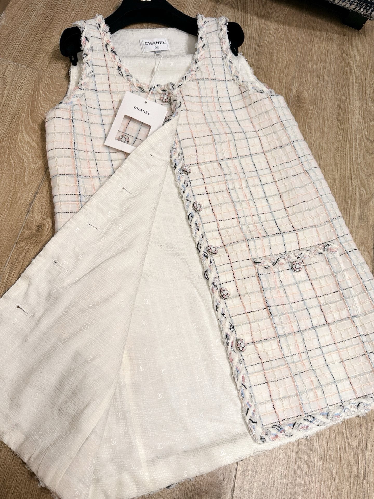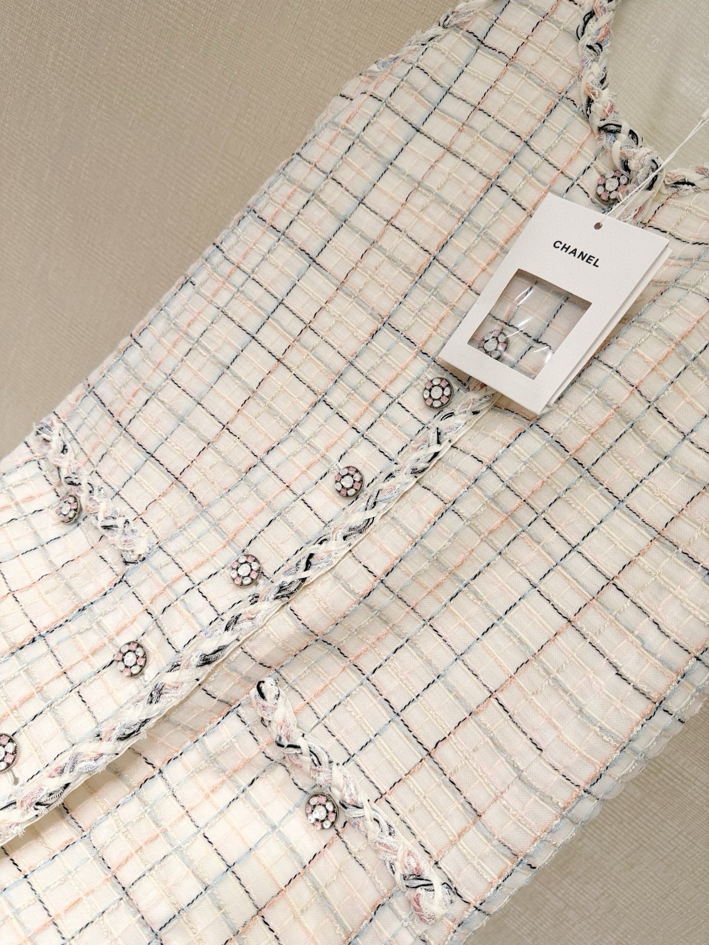 Chane* Métiers d'Art collection patchwork tweed and tulle vest dress
