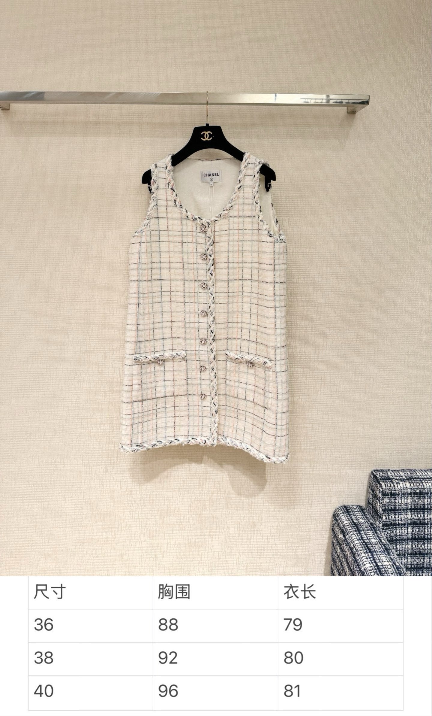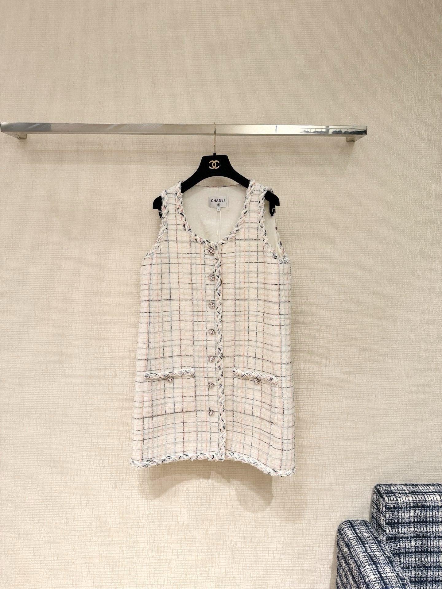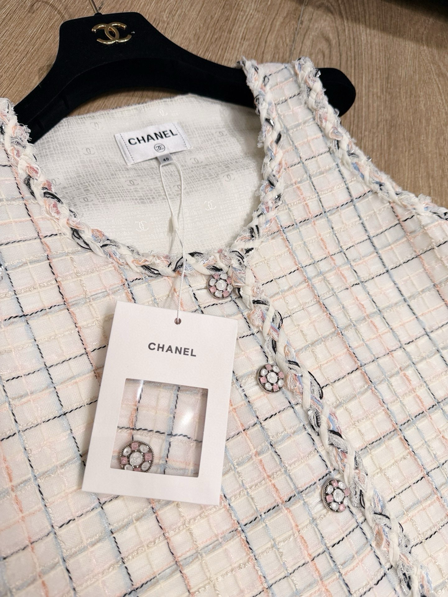 Chane* Métiers d'Art collection patchwork tweed and tulle vest dress