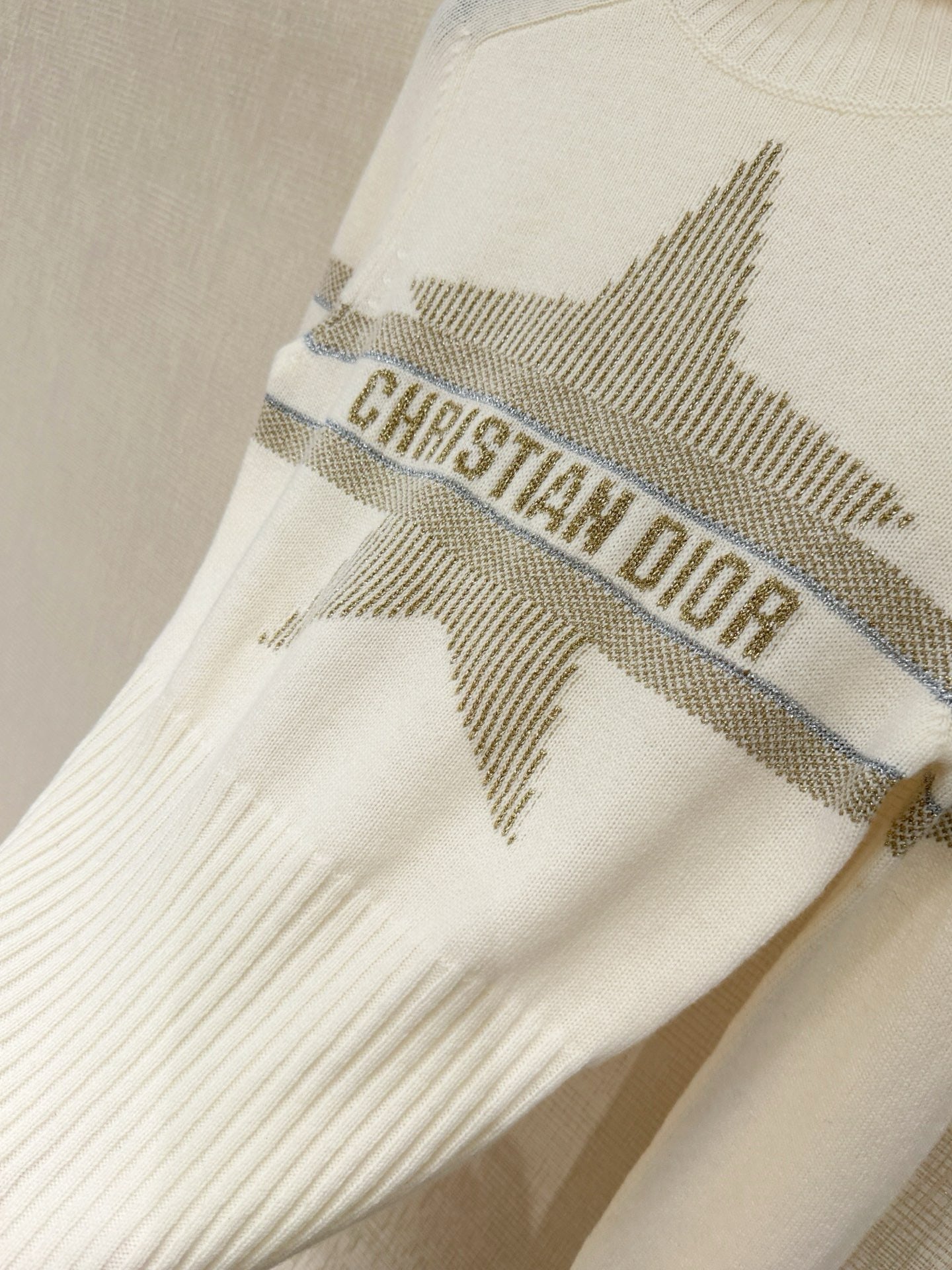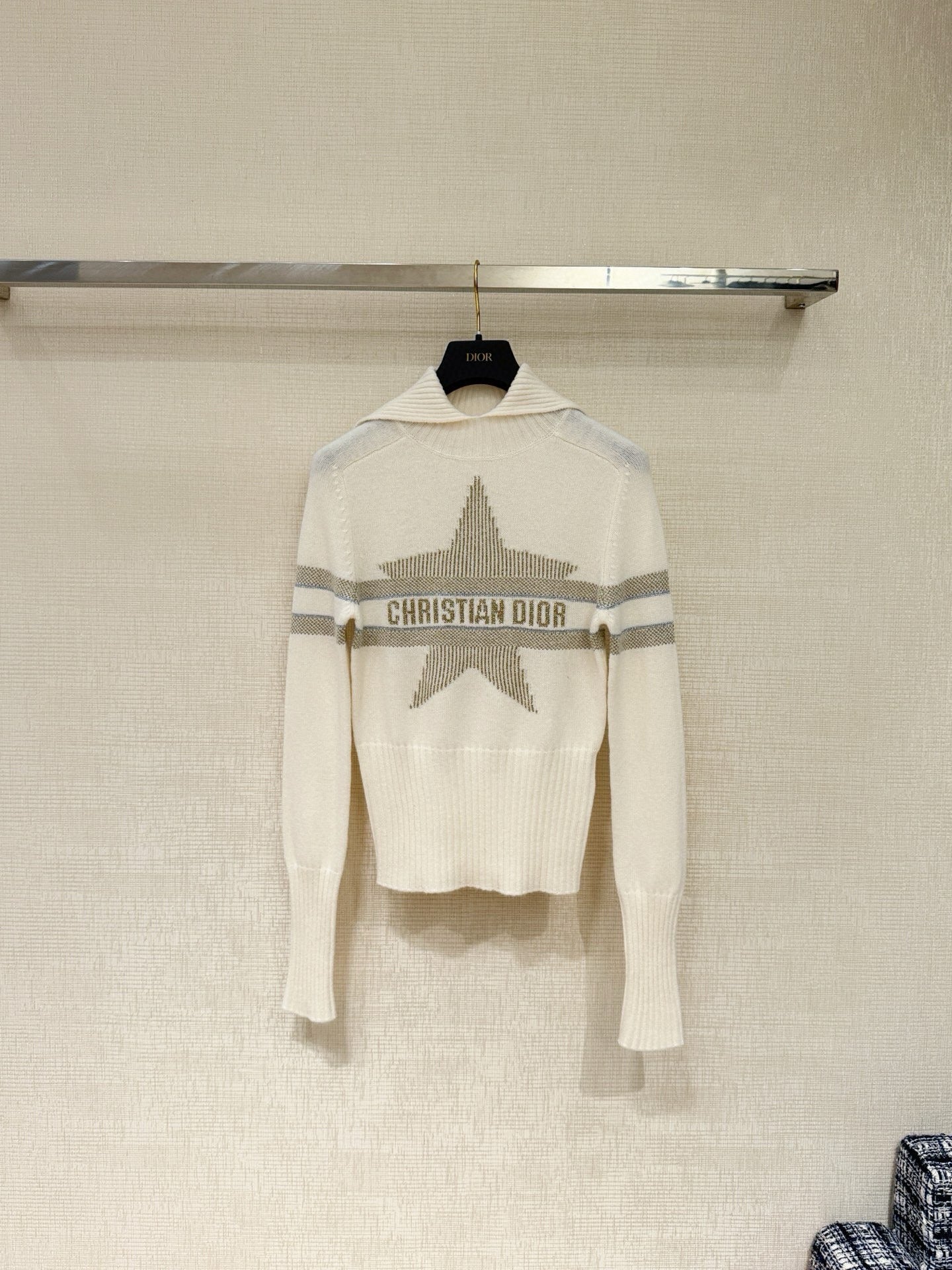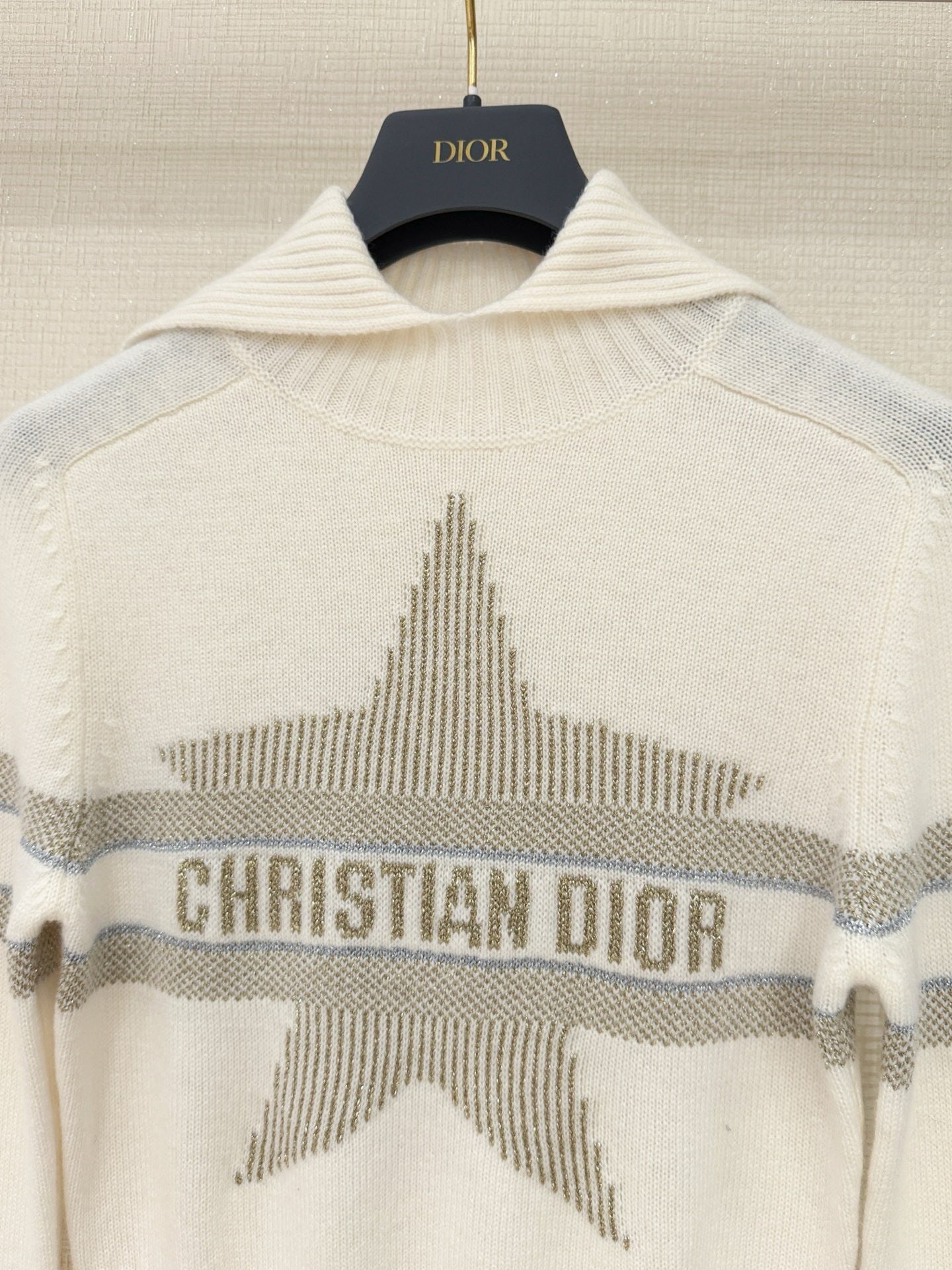 Dio* Premium Quality Ski Collection Gold Five-Pointed Star Cashmere Wool Collar Knit Sweater