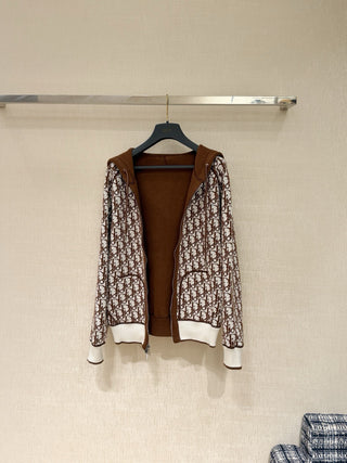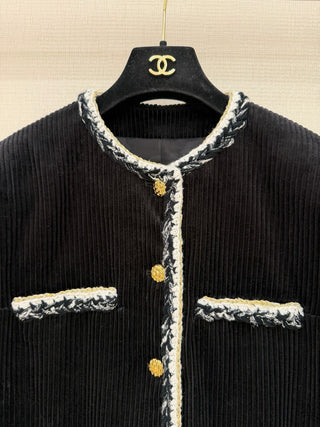 Chane* 25B Métiers d'Art collection new arrival: Stand-up collar zip-up baseball jacket with ribbon.