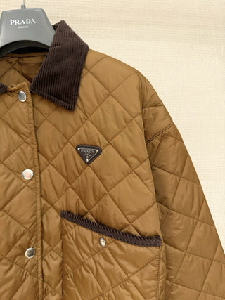 Prad* Autumn/Winter New Arrival: Brown Diamond Pattern Cotton Jacket/Short Coat