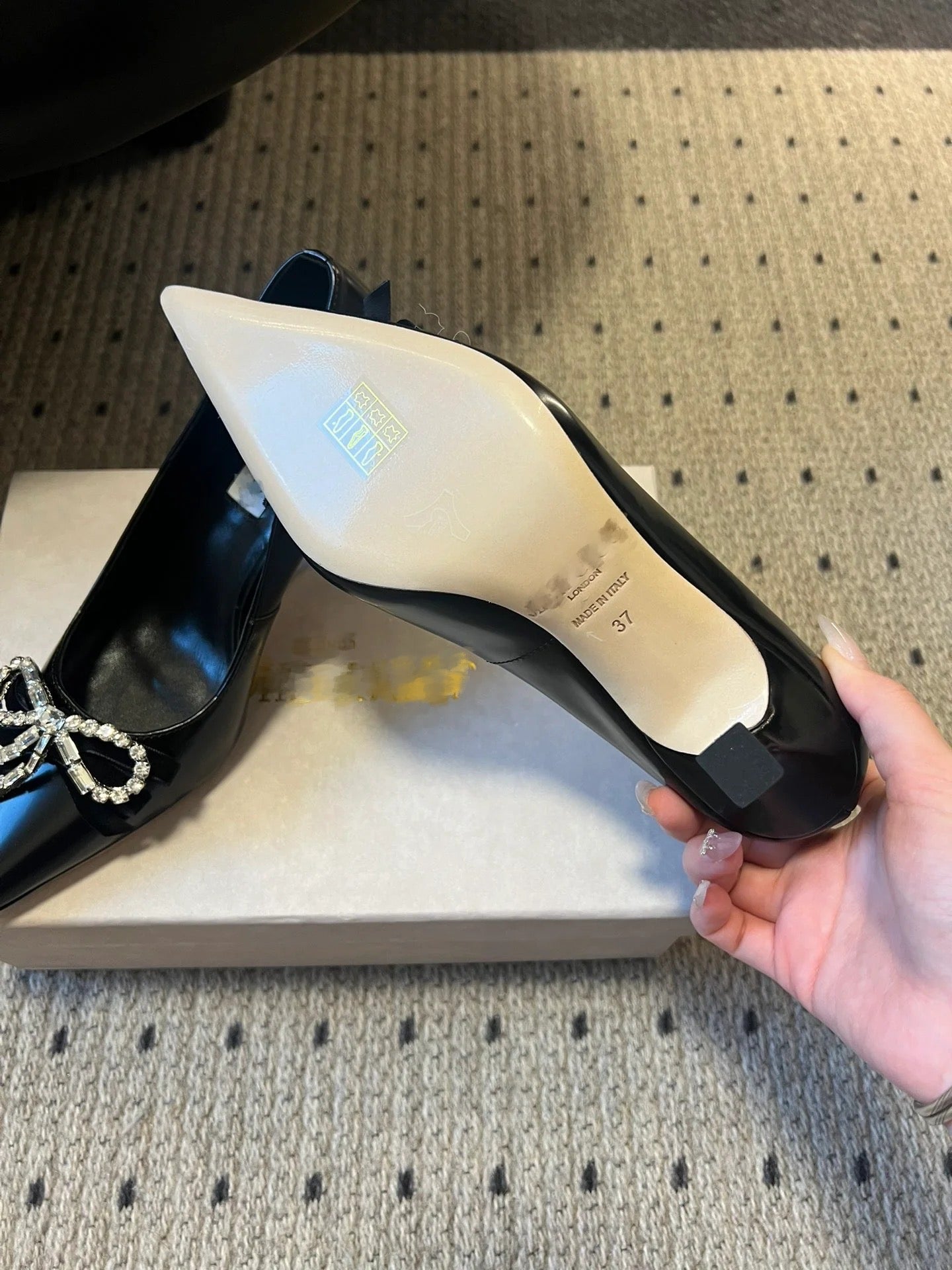 Elegant Rhinestone Bow Pointed-Toe High Heels