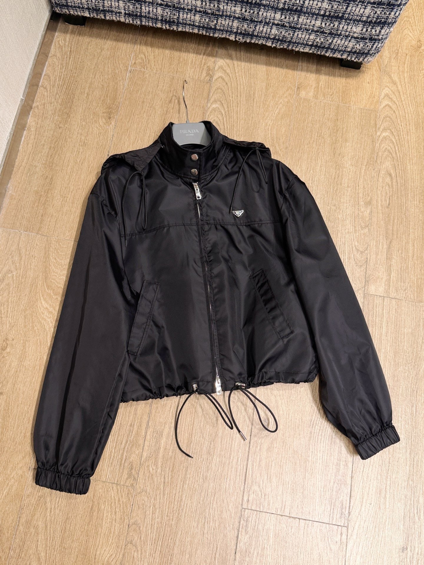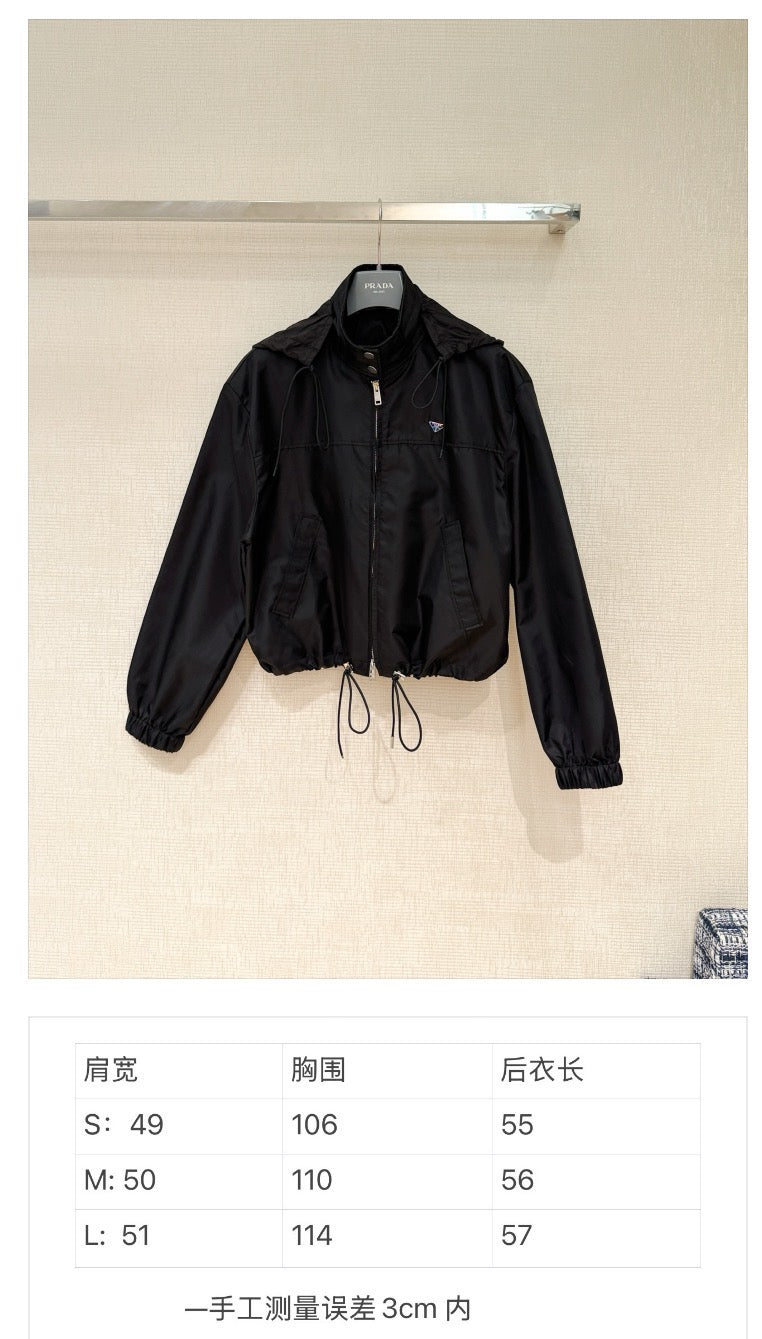 Early spring new arrival: Short, drawstring, zippered windbreaker jacket.