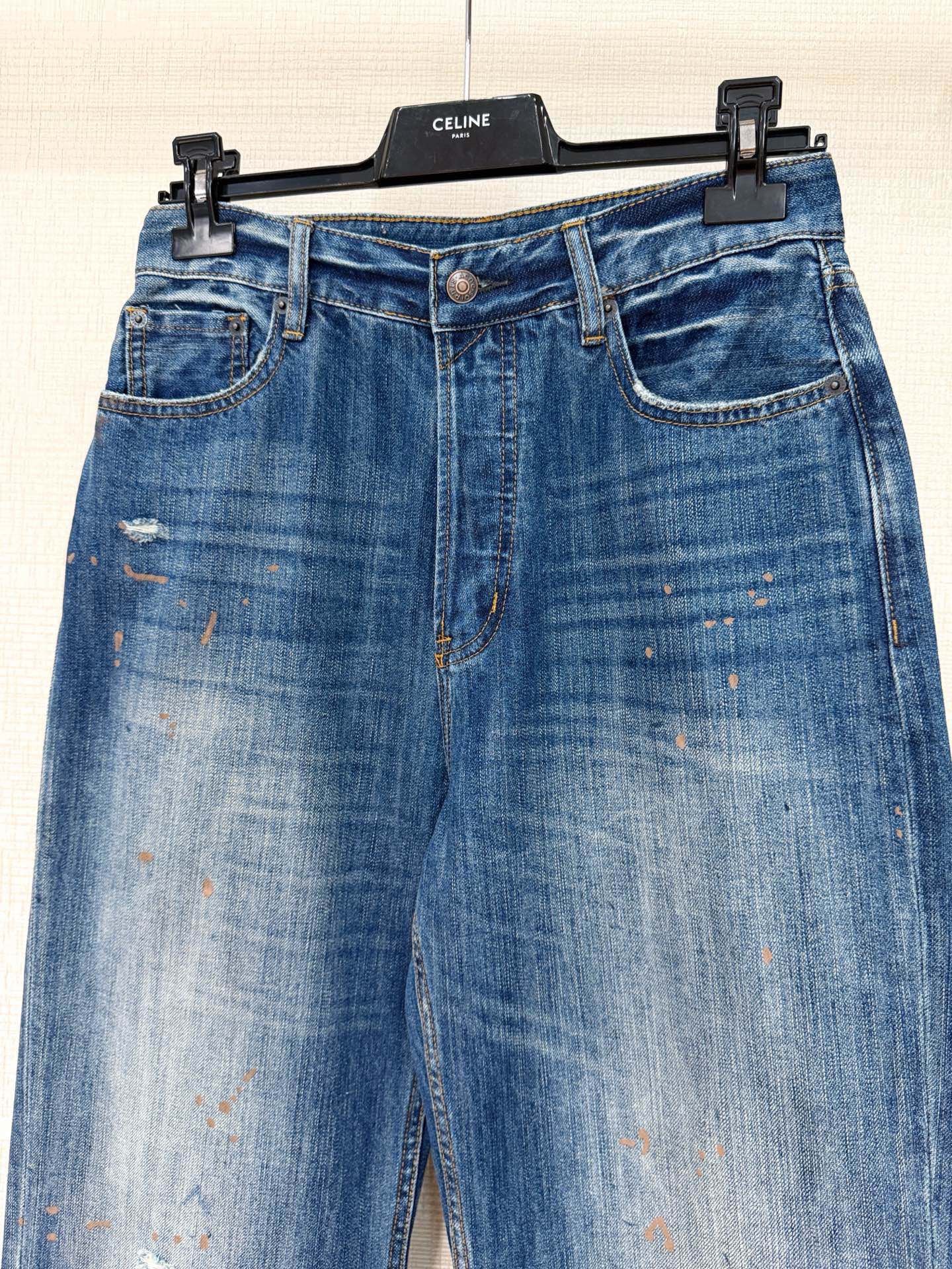 Early spring new style blue splatter paint denim jeans