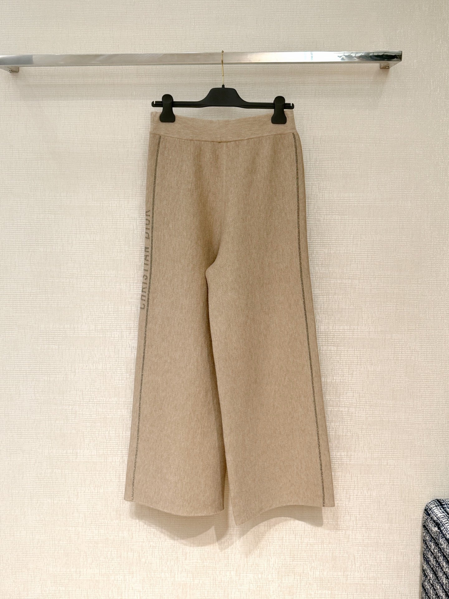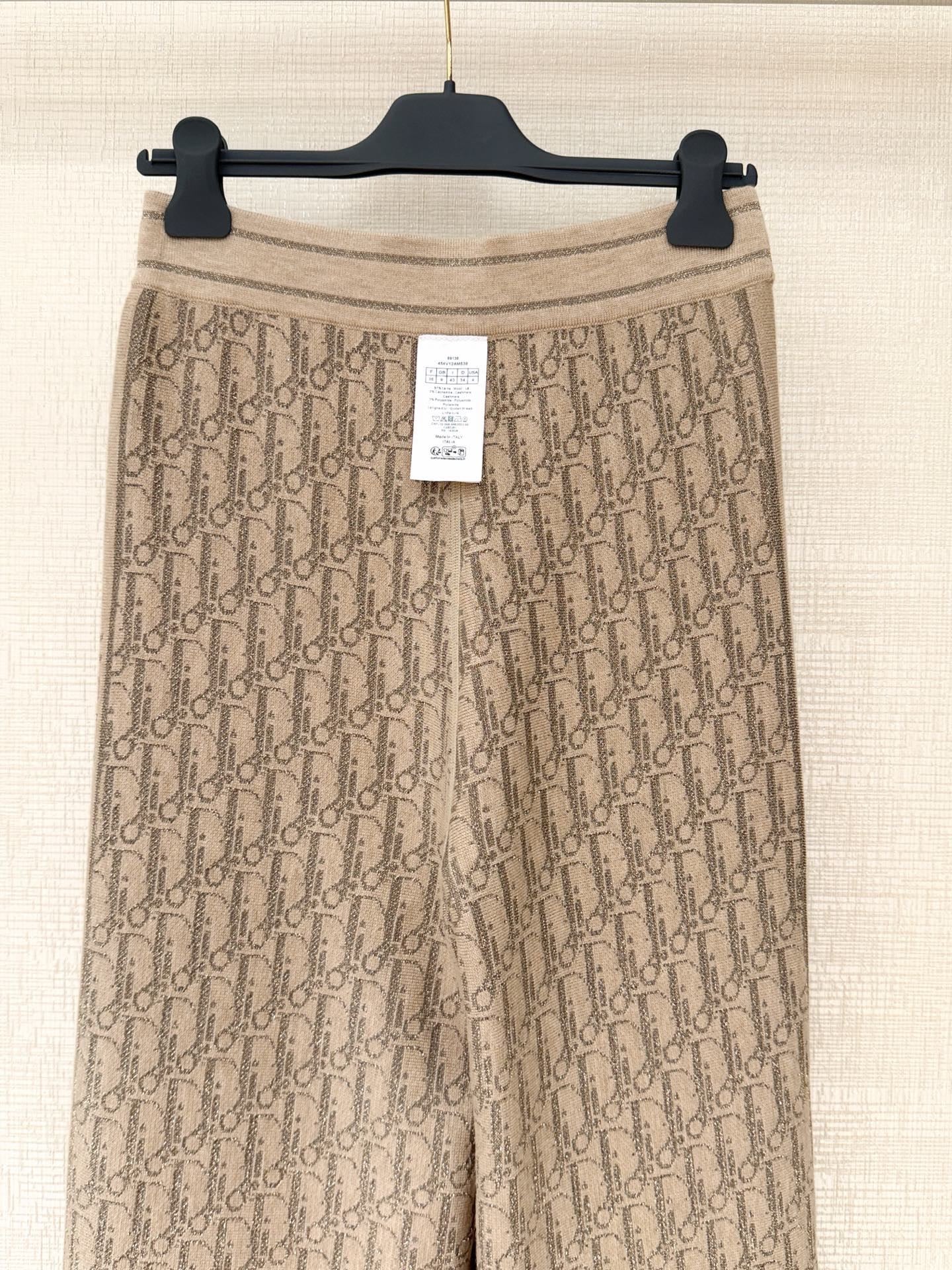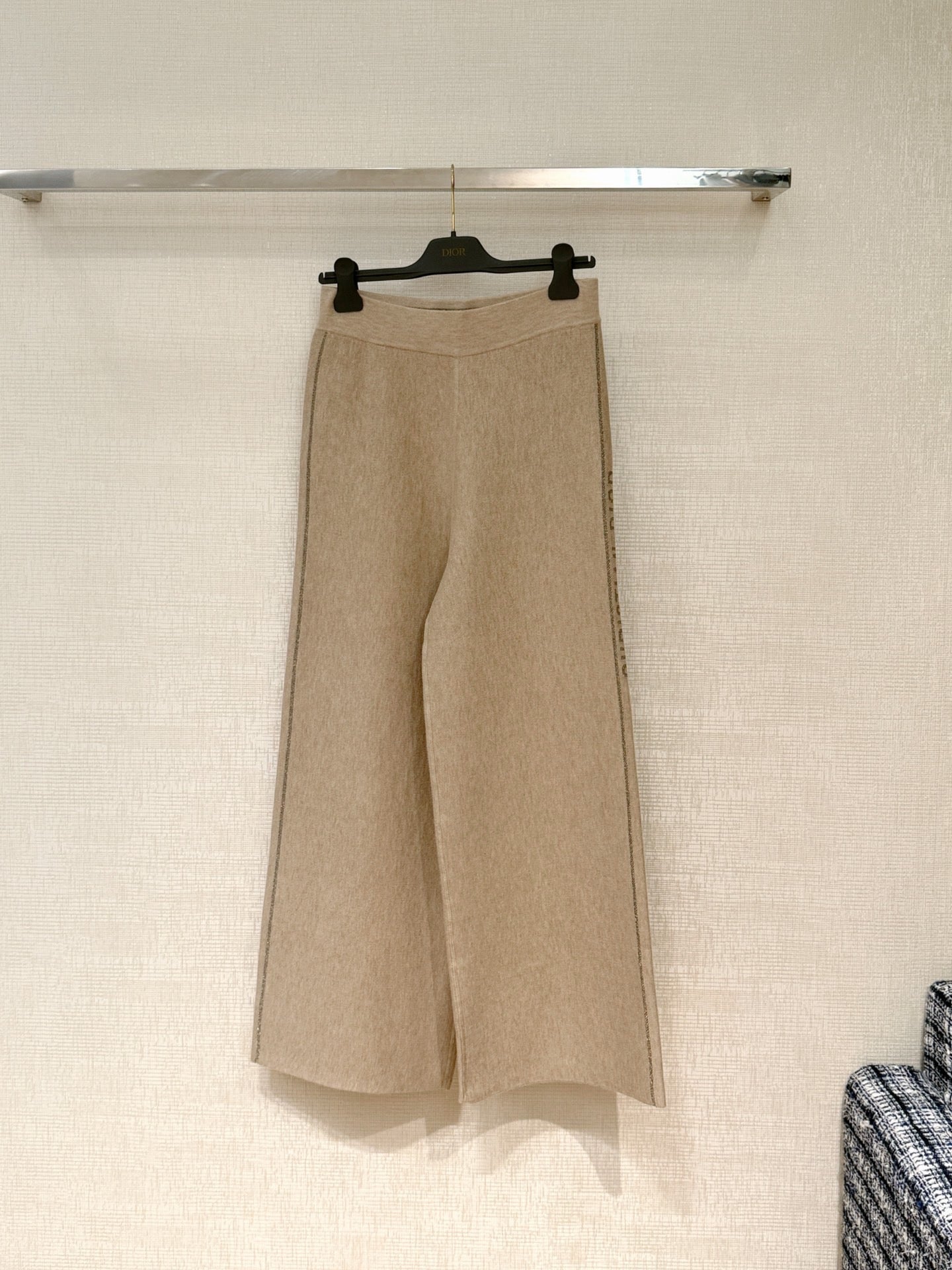 New ribbed cotton straight-leg trousers with monogram pattern.