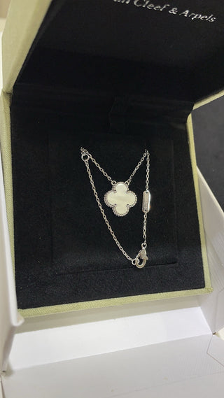 VCA Classic White Mother-of-Pearl Four-Leaf Clover Platinum Necklace (925 Silver + Brass)