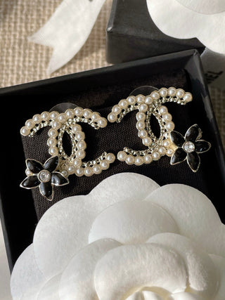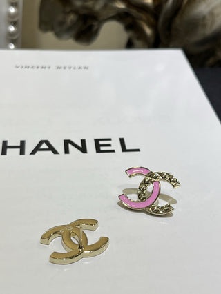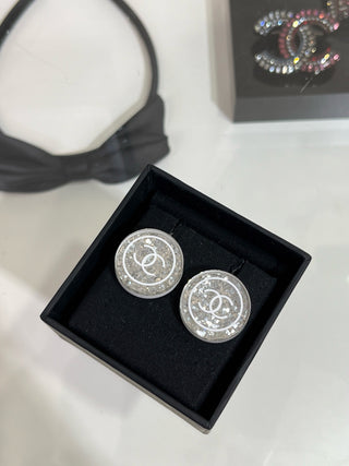 𝑪𝒉𝒂𝒏𝒆*New full diamond double C pendant gold diamond pattern half circle earrings