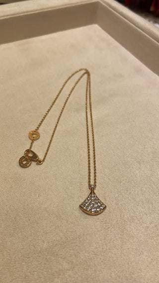 𝐵𝑉𝐿𝐺𝐴𝑅𝐼 Small fan-shaped rose gold necklace with full diamonds (925 silver + zircon)
