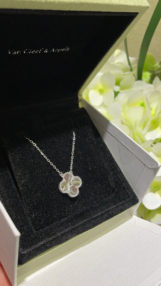 𝑉𝑎𝑛 𝐶𝑙𝑒𝑒𝑓 & 𝐴𝑟𝑝𝑒𝑙𝑠 White gold and silver laser four-leaf clover necklace(925 silver )