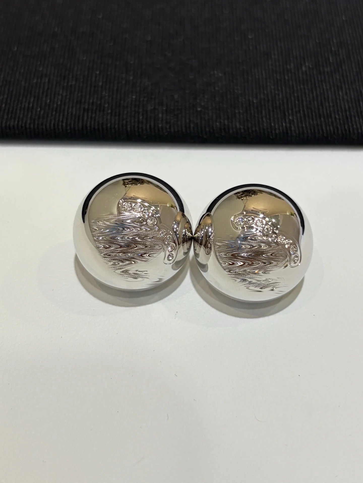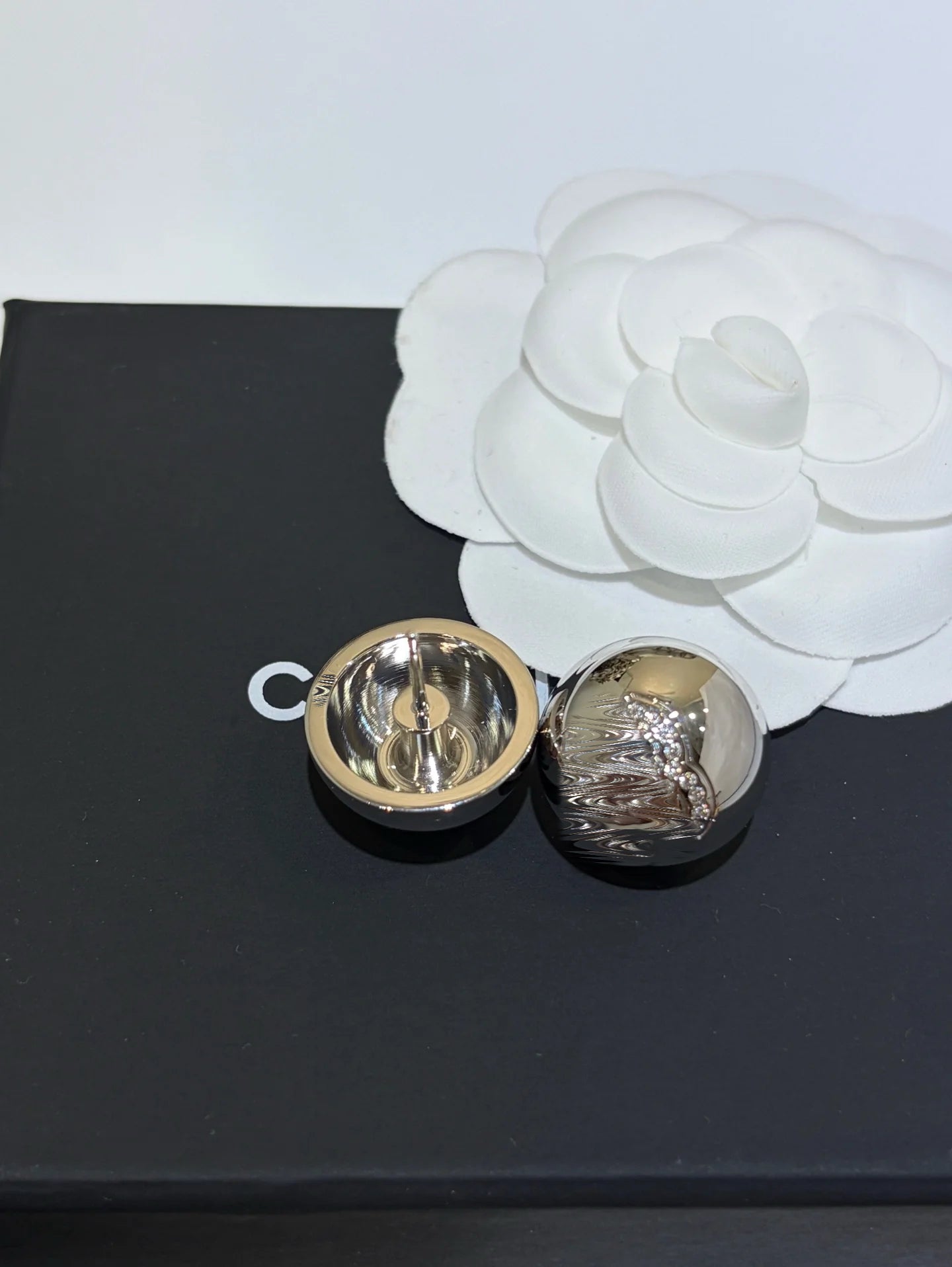26C New Silver Crystal Double C Hemispherical Button Earrings