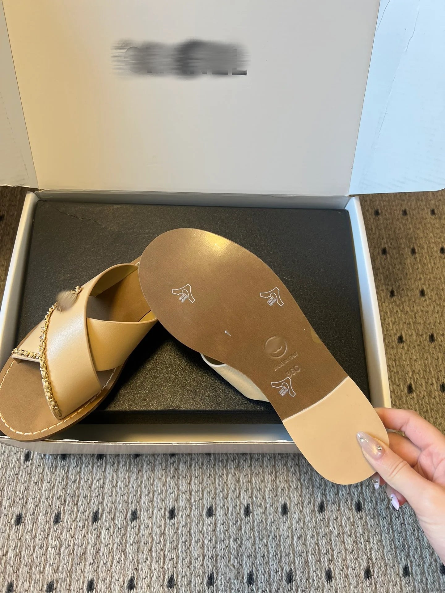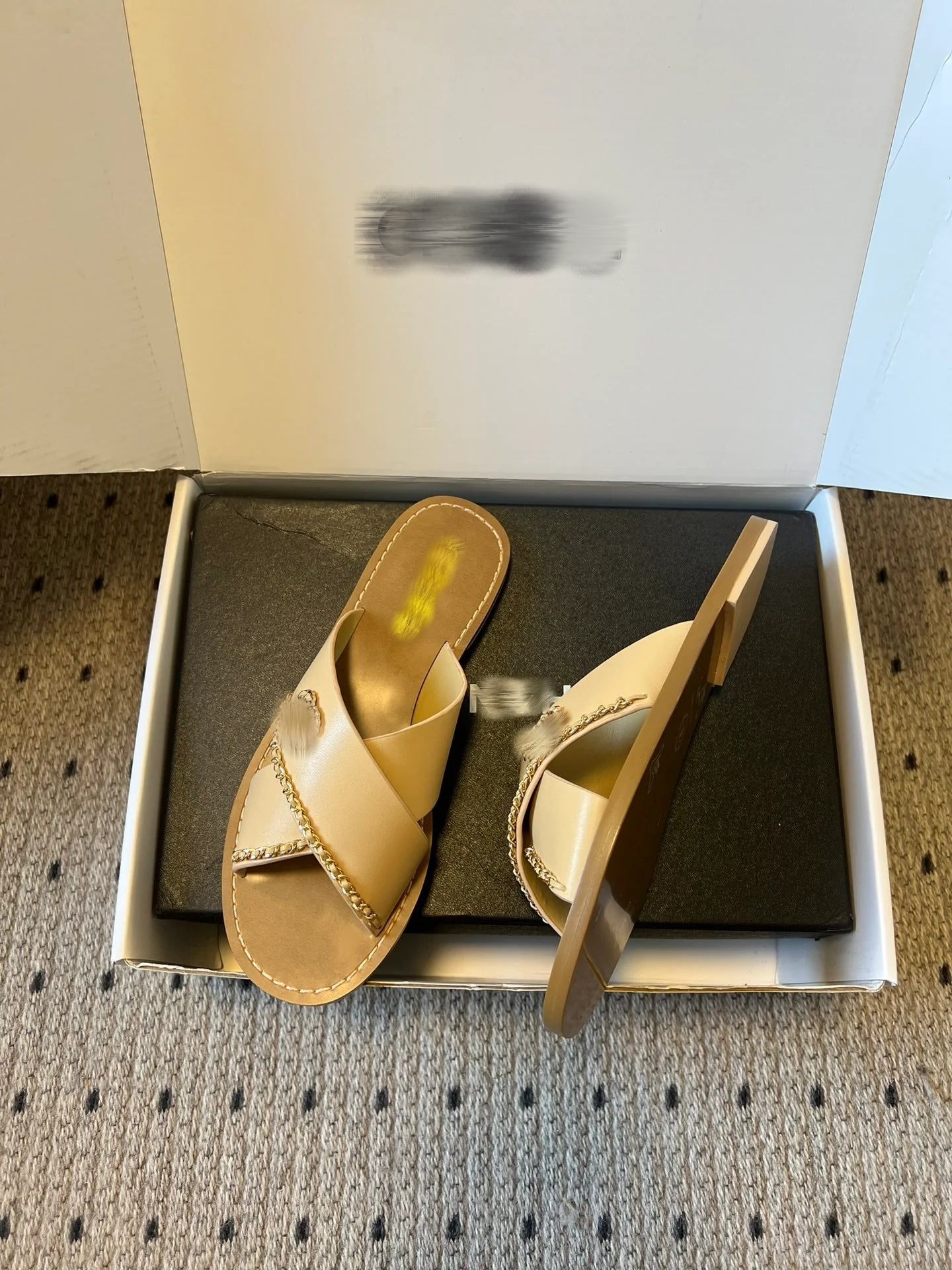 26ss Metal chain embellished criss-cross strap flat sandals