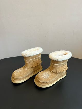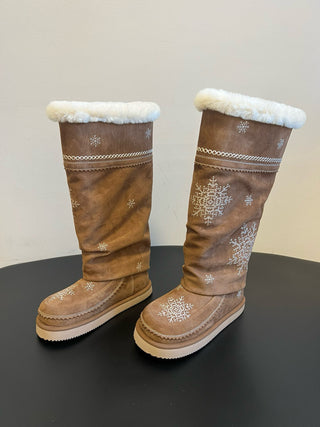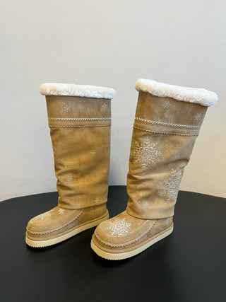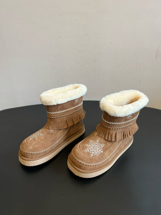 Unfoli #Autumn/Winter Retro Snowflake Tassel Tall Snow Boots Slouch Boots