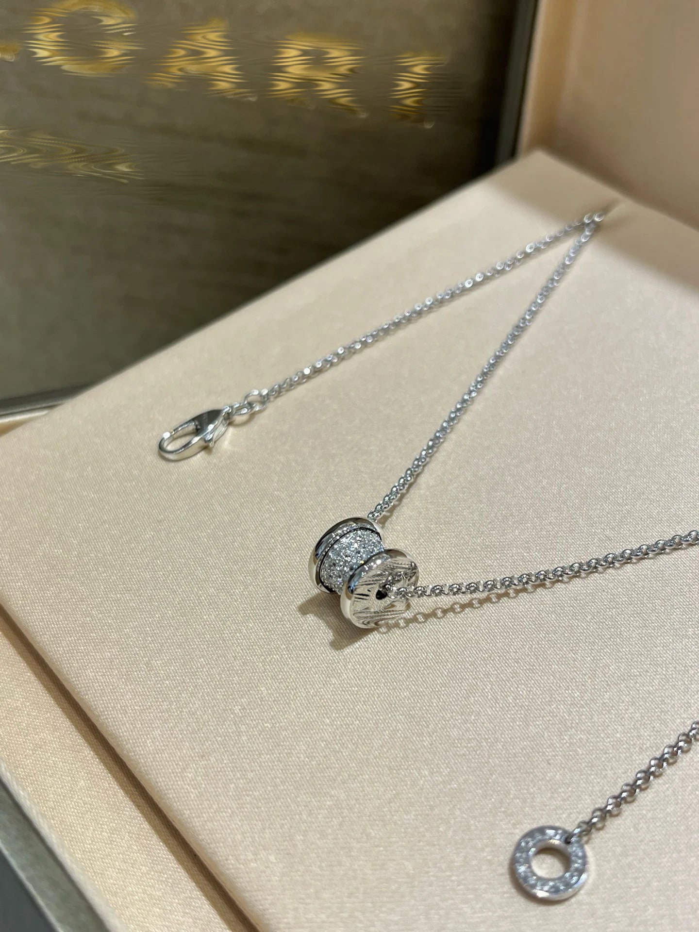 New white gold full diamond spring waist necklace(925 silver + zircon)