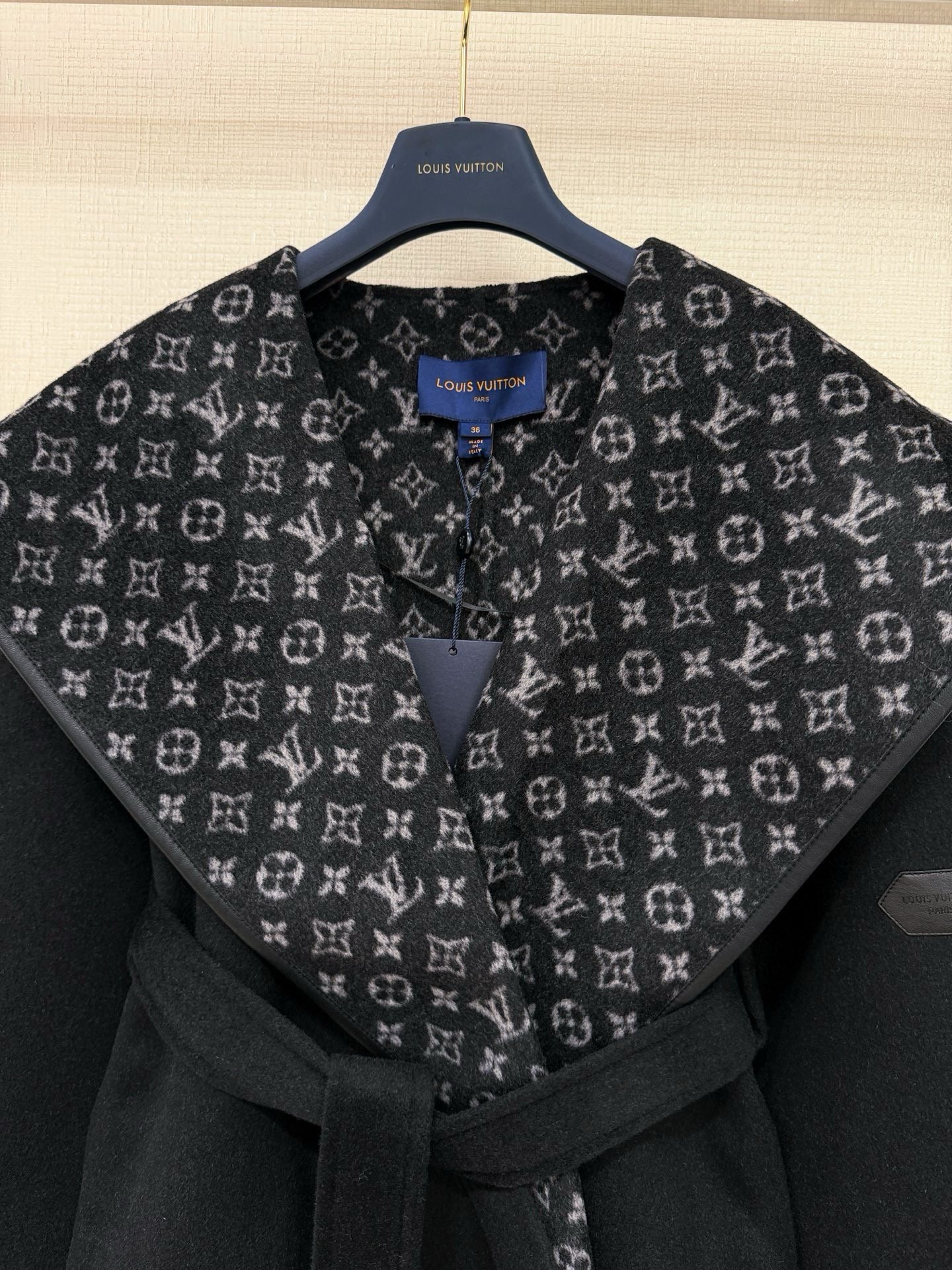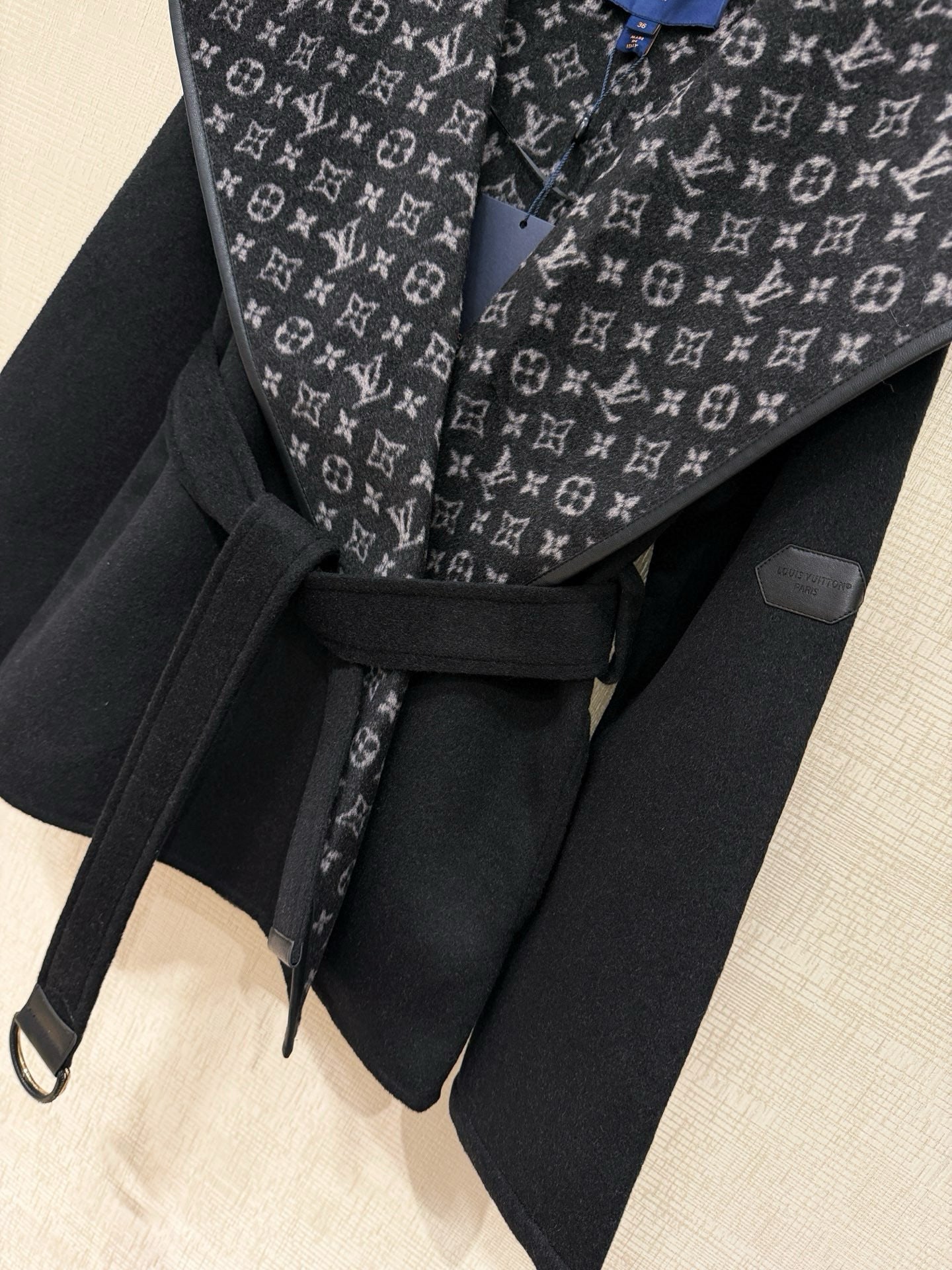 1V New Wool Monogram Canvas Tie-Waisted Hooded Short Coat
