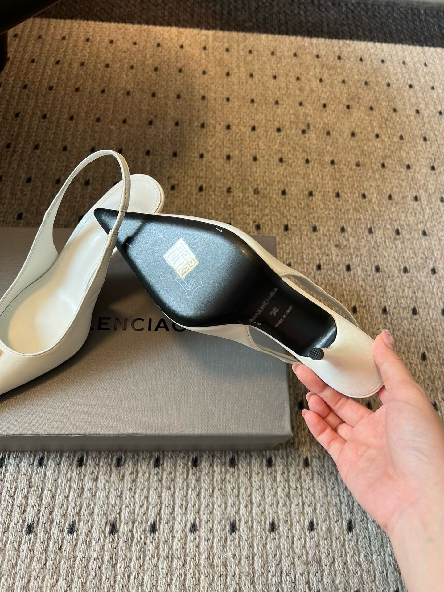 Balenciag* pointed-toe kitten-heel pumps