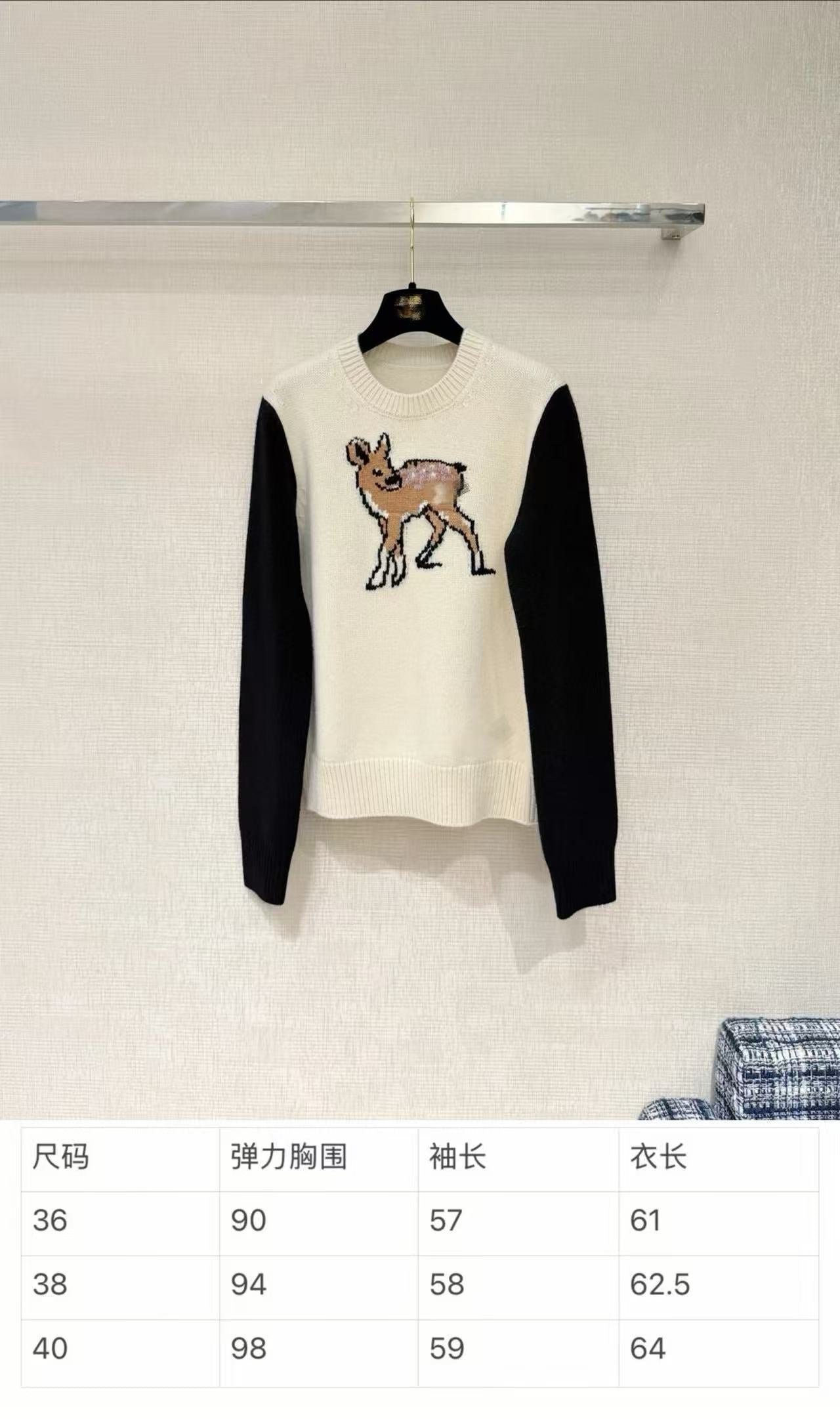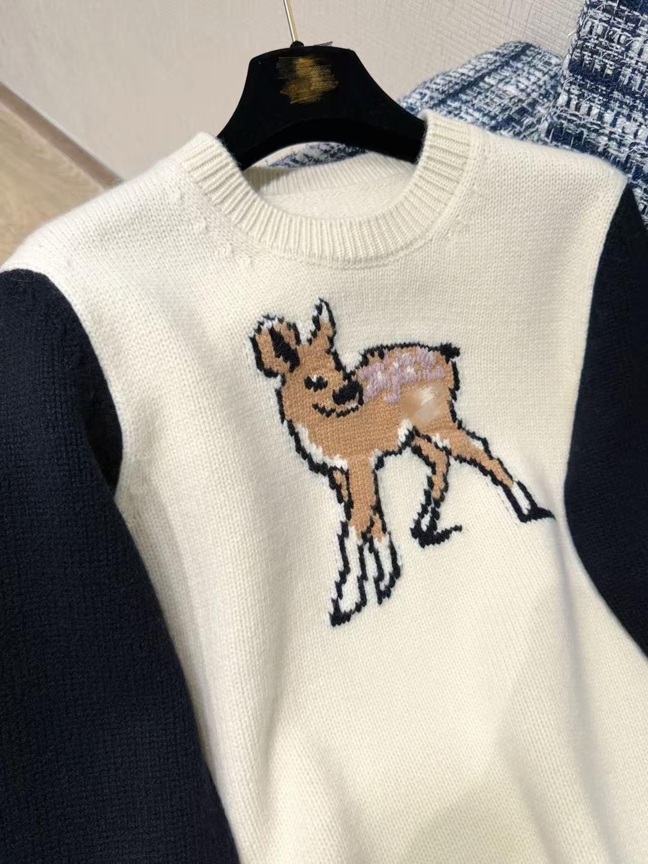25N Deer Jacquard Crew Neck Cashmere Wool Sweater