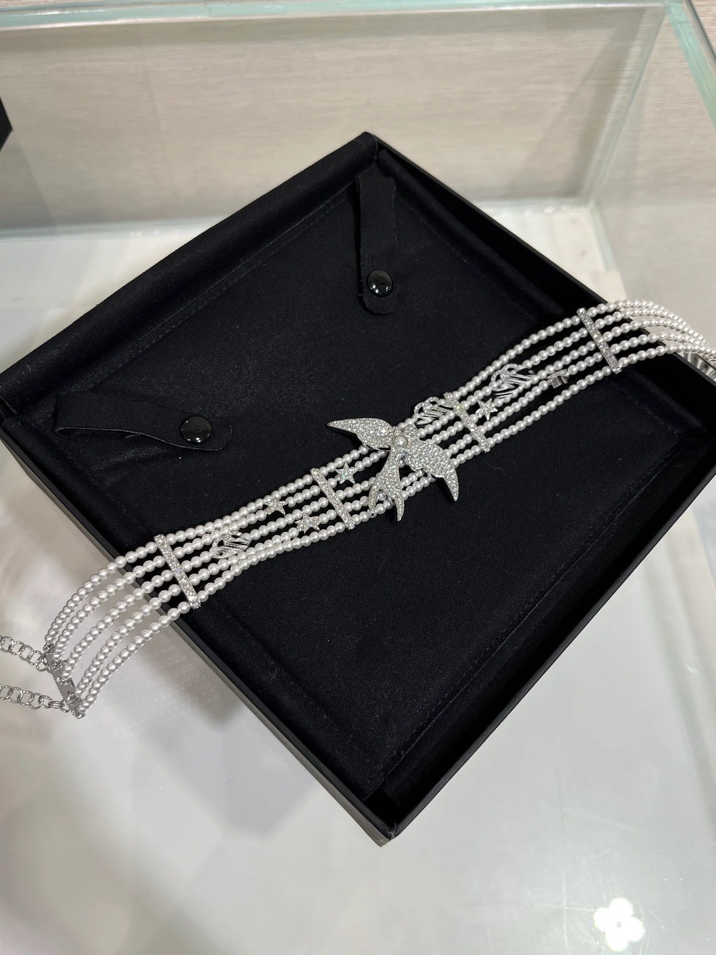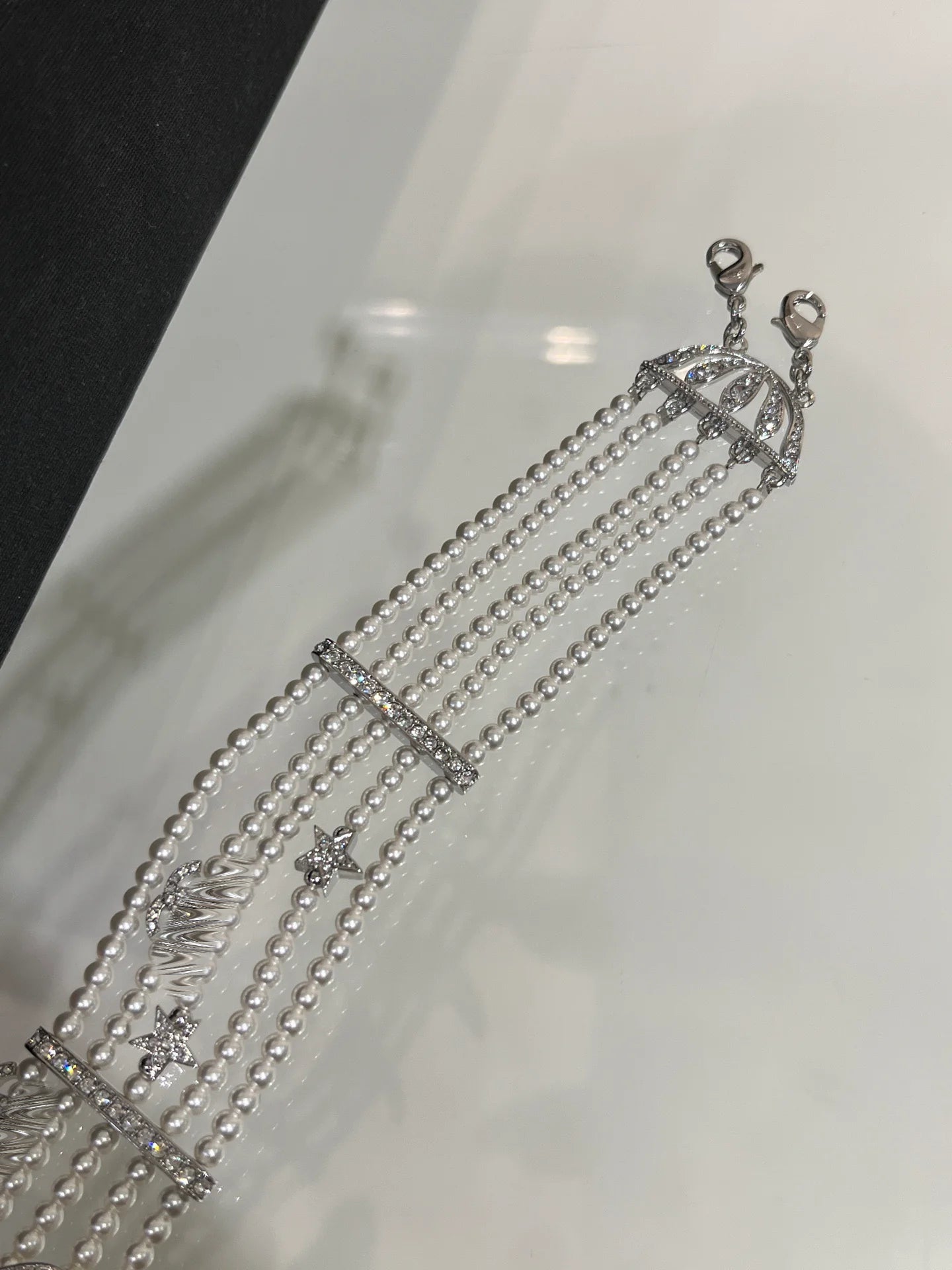 25s New Silver Bird Full Diamond Double C Five-Layer Pearl Necklace