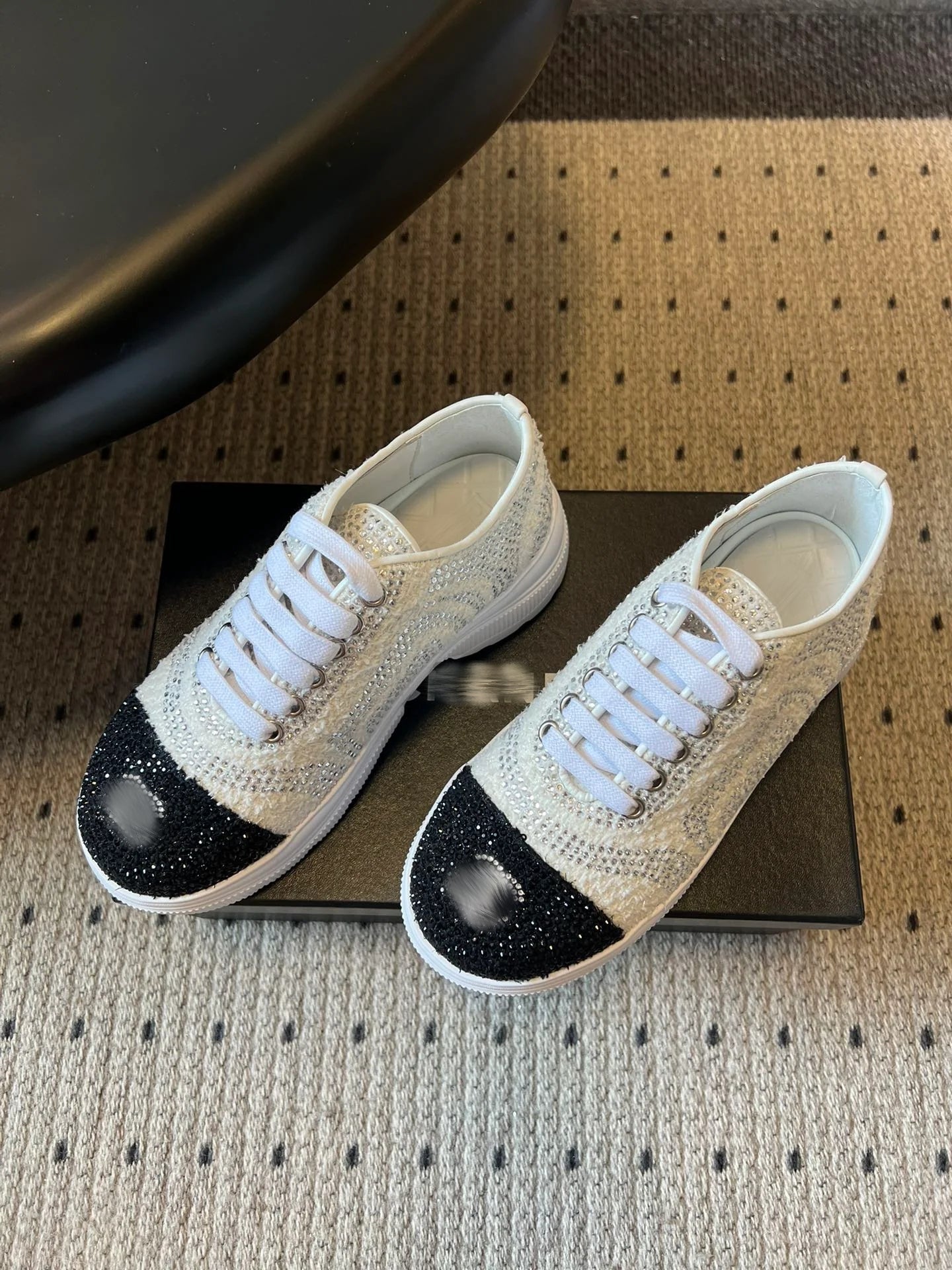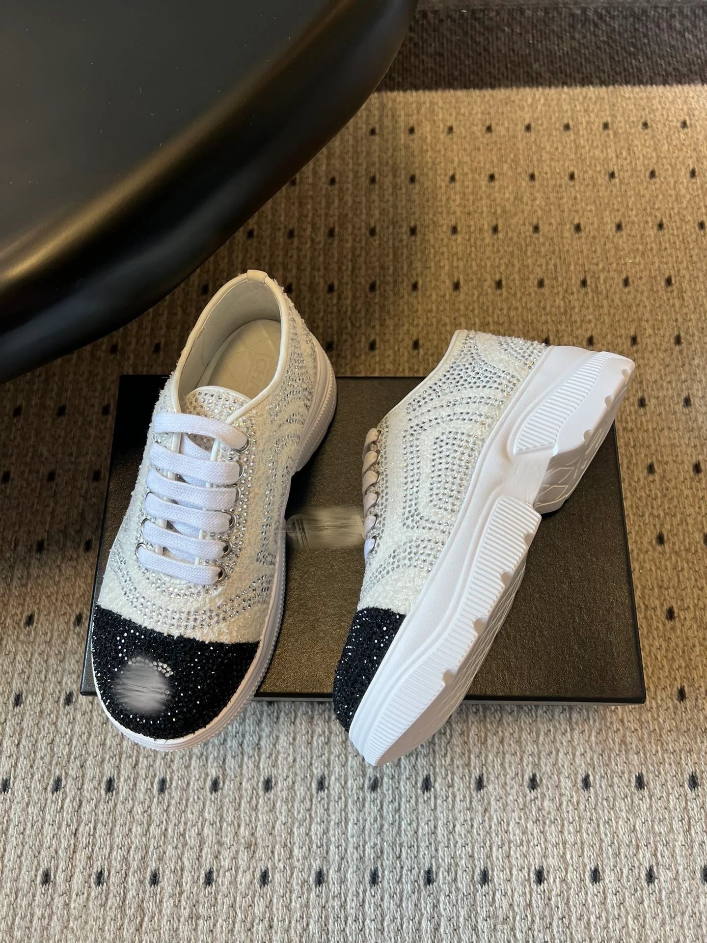 Platform Rhinestone Color-Blocked Lace-Up Sneakers/Casual Shoes