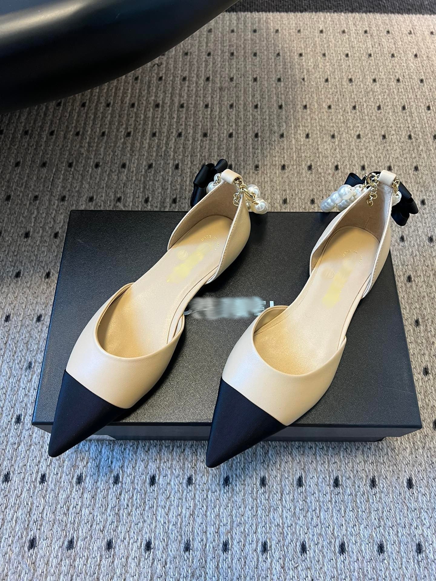 Pointed Toe Color Block Pearl Chain Mary Jane Shoes