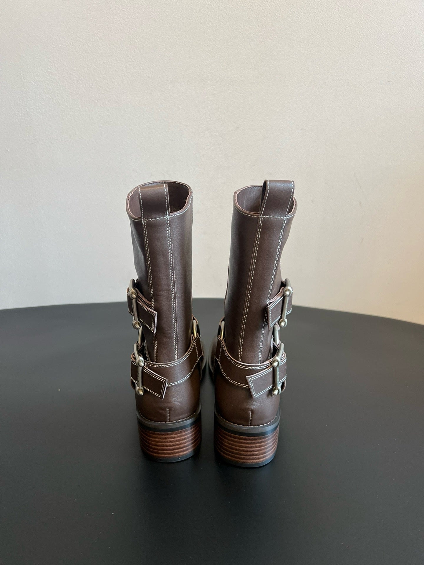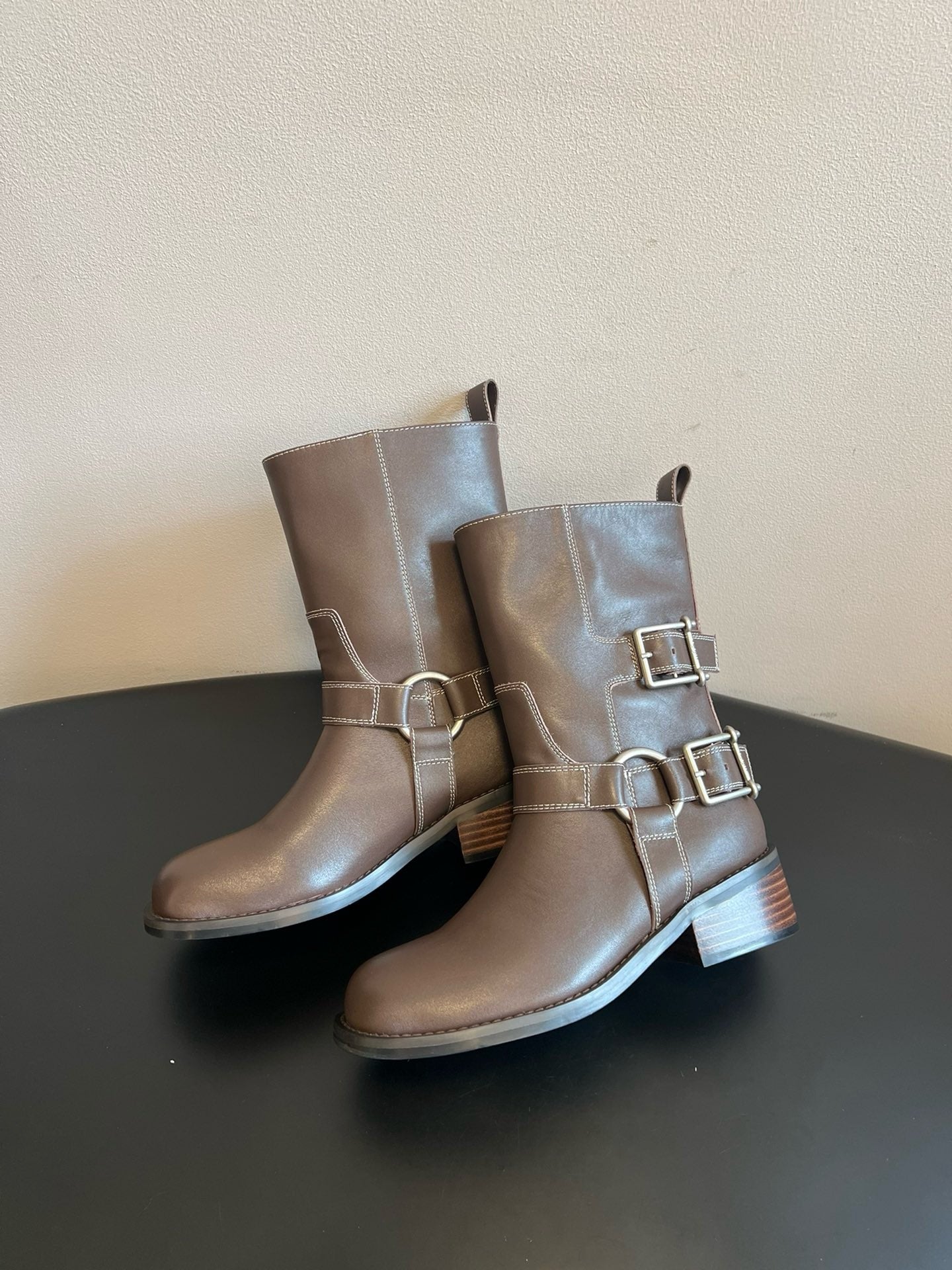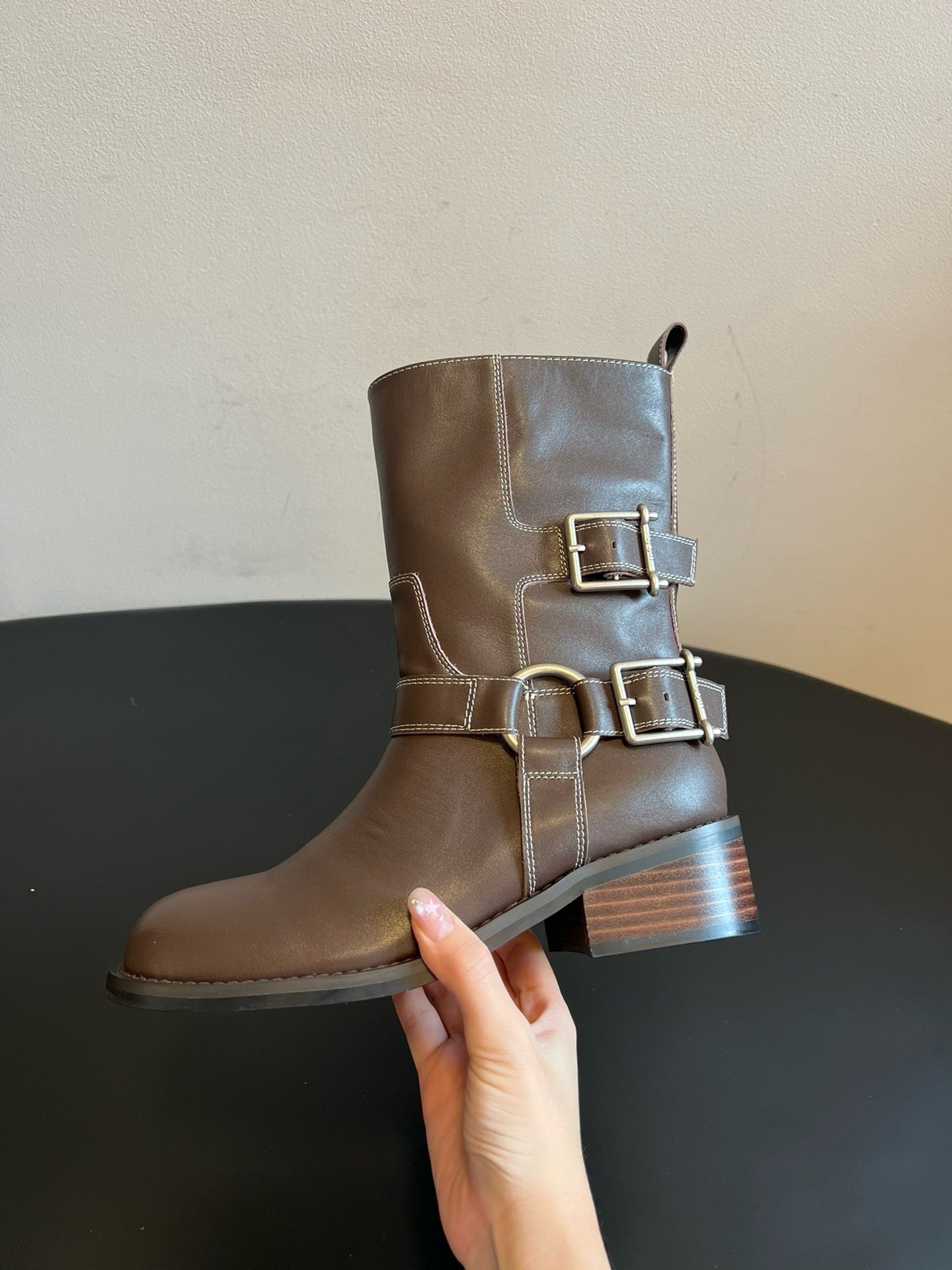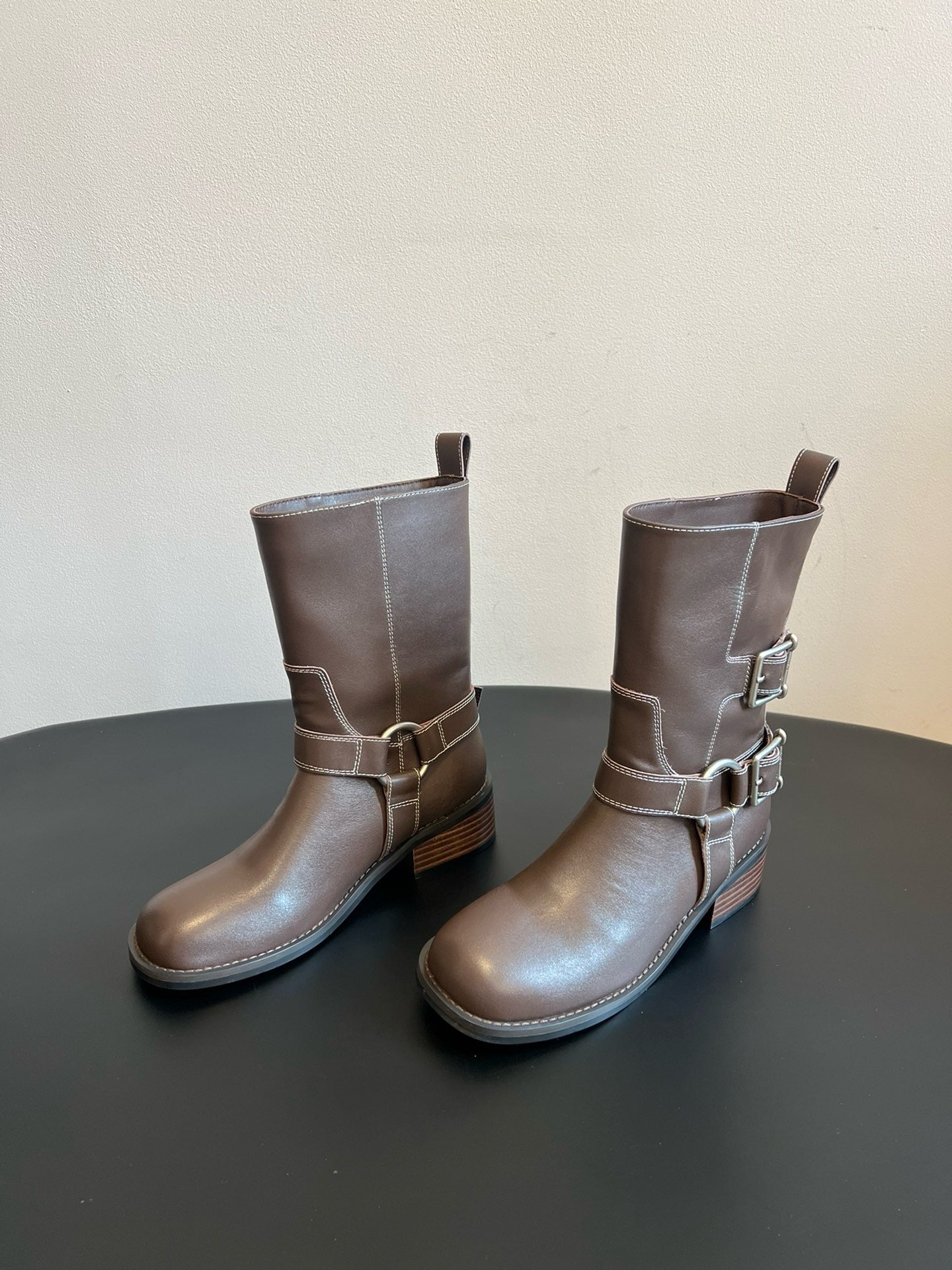 unfoli* new autumn and winter metal buckle western cowboy boots
